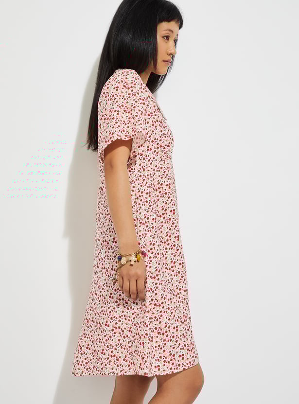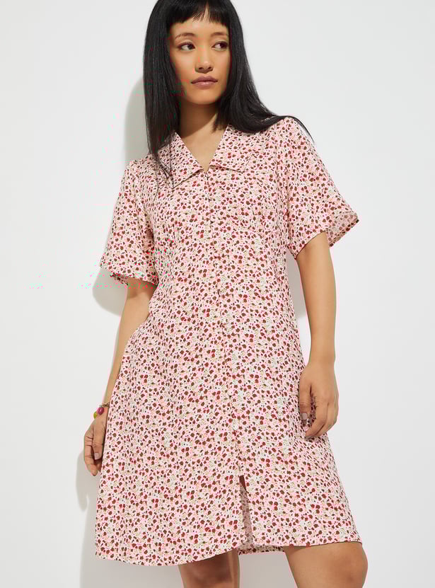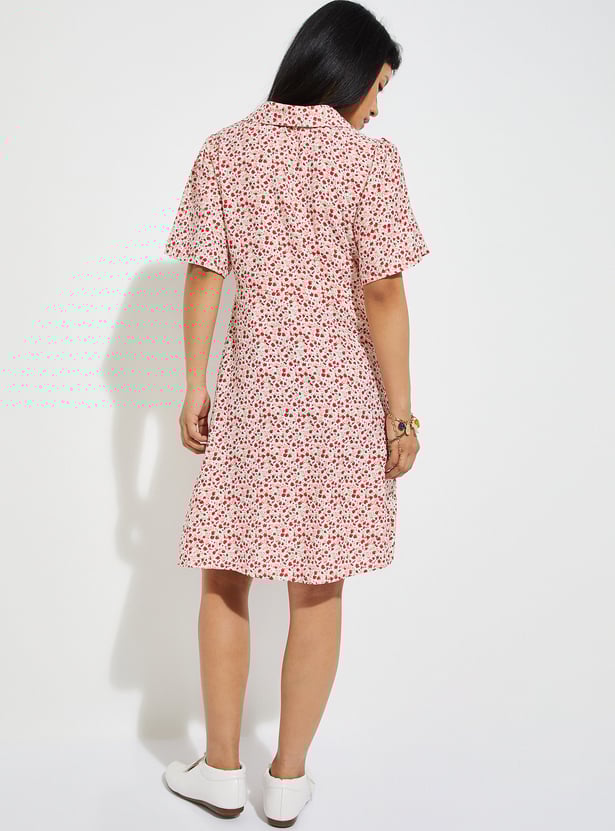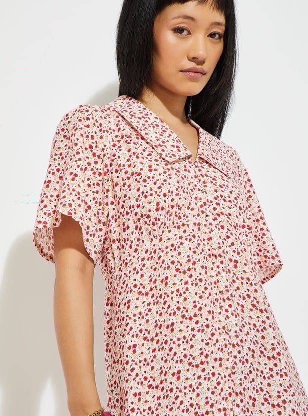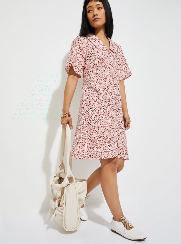 Add a playful touch to your everyday wardrobe with this printed A-line dress. Designed with a collared neckline and flared sleeves, it features a cinched empire waist that creates a flattering silhouette. Finished in a mini length, it’s perfect for casual outings or brunch dates.