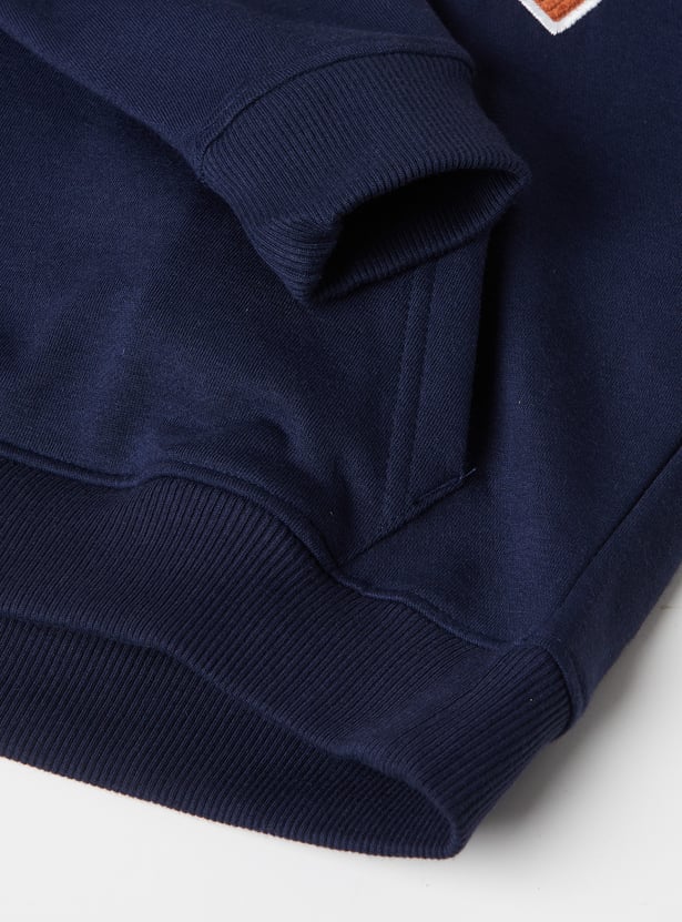 This appliqué oversized sweatshirt brings together cozy comfort and standout detailing. Designed with a hooded neck, full sleeves, and a ribbed hem, it’s the perfect blend of laid-back style and everyday ease.