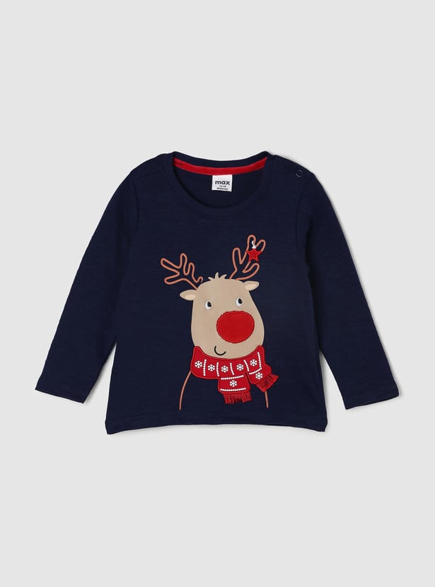An ideal pick for your little one's casual wardrobe, this appliqued T-shirt is designed with full sleeves and a crew neckline.