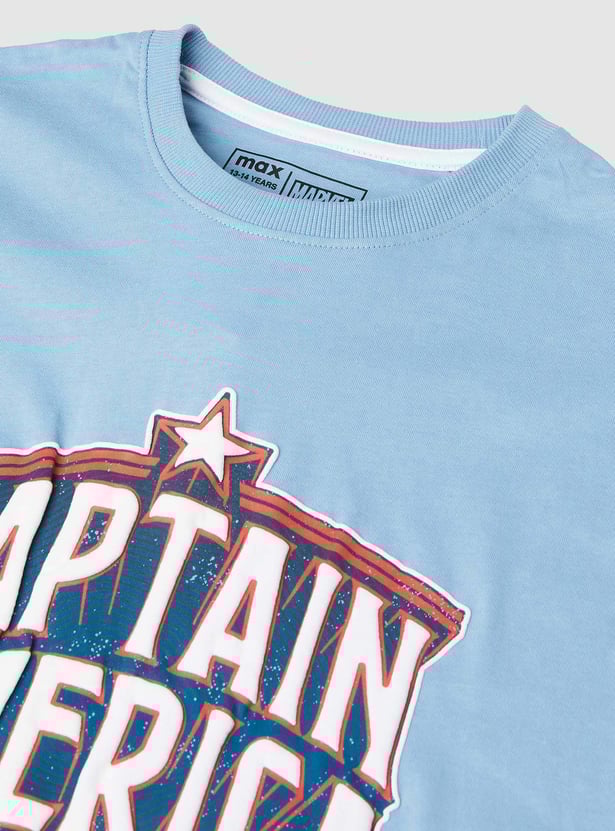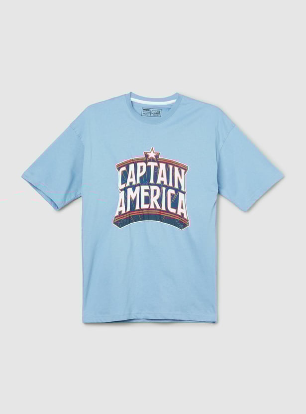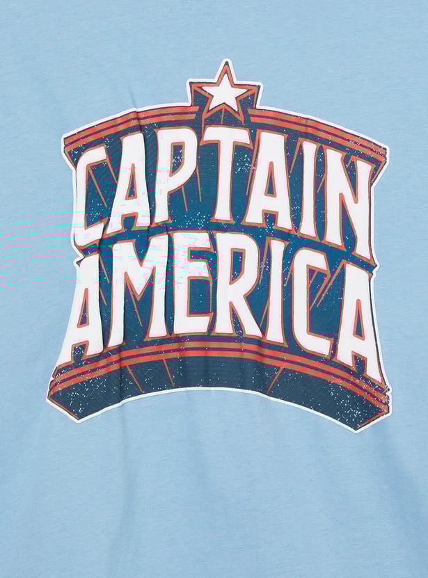 Show off your love for superheroes with this Captain America T-shirt. Featuring a classic crew neck and half sleeves, it offers everyday comfort with a bold graphic design that celebrates the iconic hero.