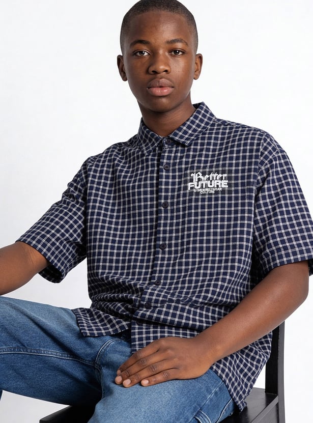 Boys Checked Oversized Shirt