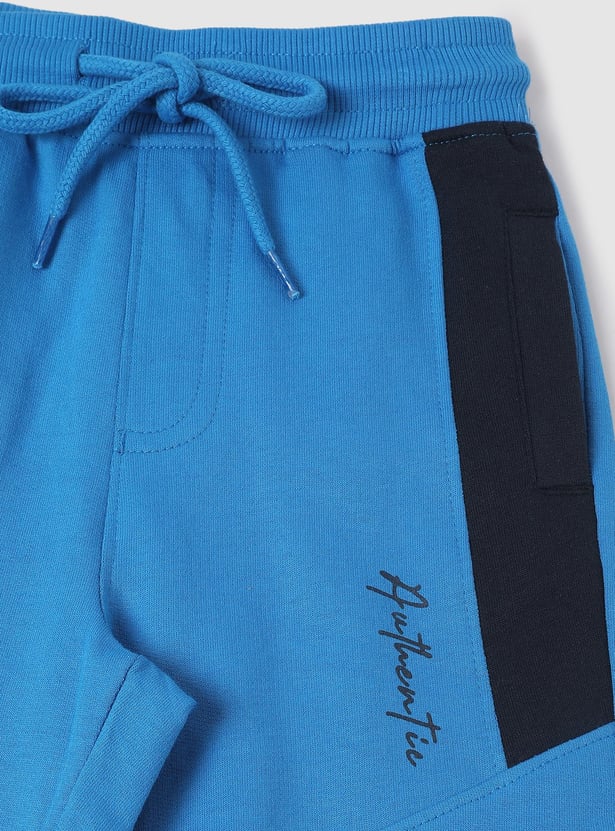 Revamp his summer wardrobe with this pair of shorts. It has a drawstring waist, colour-blocked panels, and side pockets.