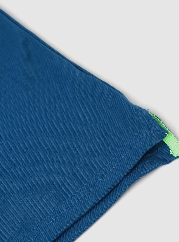 Your child's wardrobe will be spruced up by this solid polo T-shirt with contrast tipping, a polo collar, short sleeves, and a step hem. Style it with some trainers and jeans.