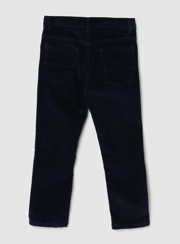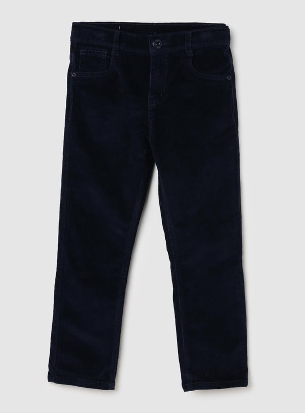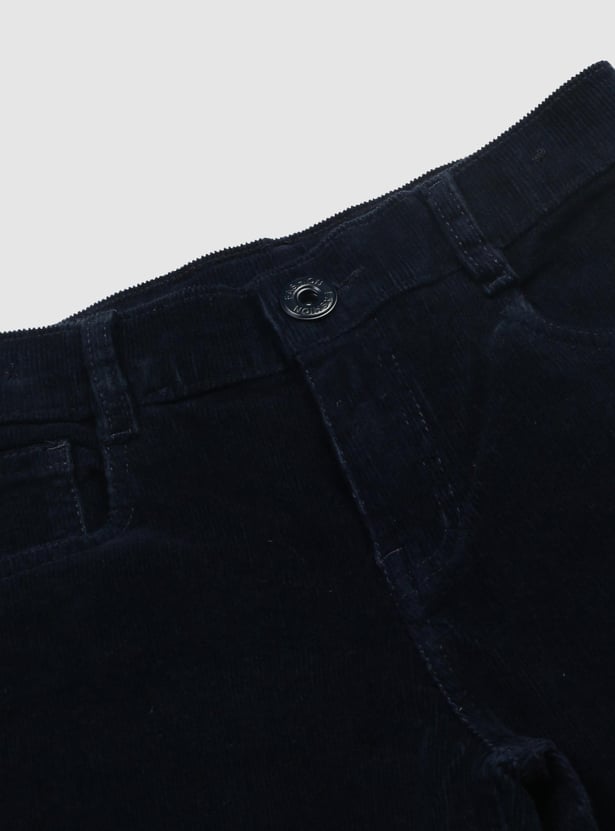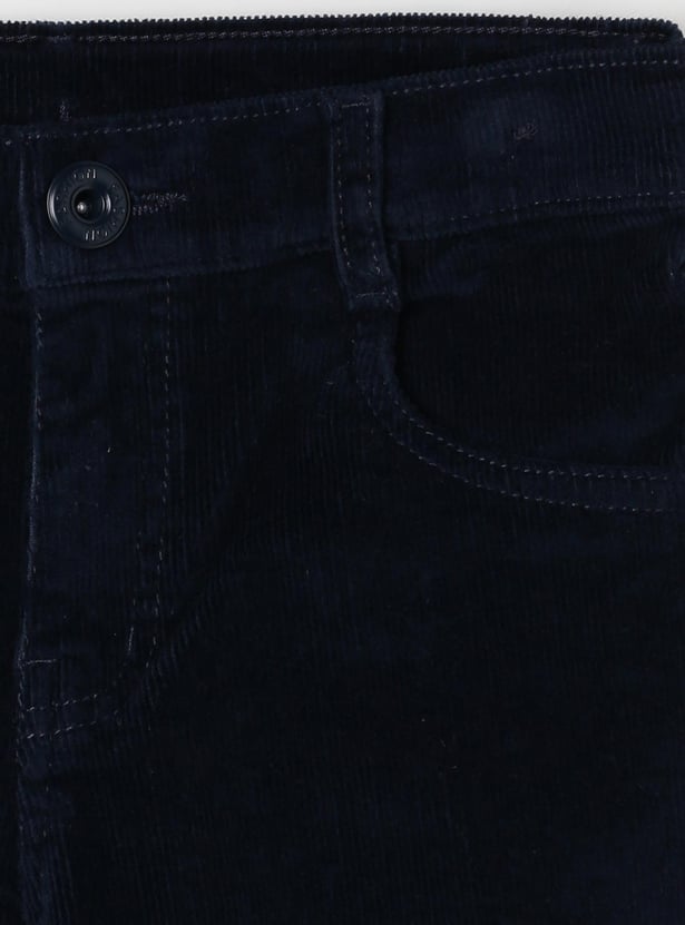 Your child will look stylish on any occasion with these corduroy trousers. It features a textured surface, pockets, a full-length structure, and a button fastening. Pair it with a casual shirt and lace-up shoes.