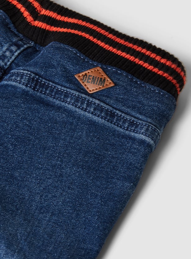 Upgrade his denim collection with these denim joggers. They feature a washed design, a ribbed waist with drawstring, slant pockets, a side cargo pocket, and a cuffed hem to complete the look.