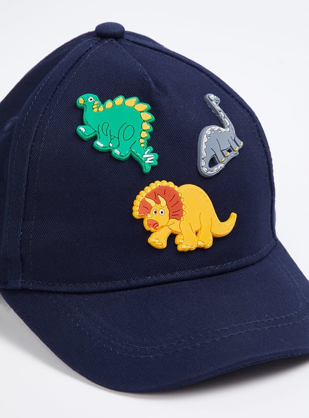 Add a fun touch to your wardrobe with this Dino applique baseball cap. Featuring an adorable dinosaur design and a secure velcro closure, it’s the perfect way to bring some playful flair to your everyday look.