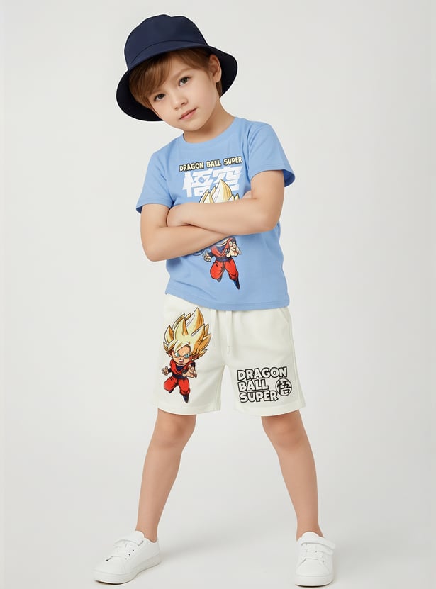 Stay comfy and stylish in this Dragon Ball Z print shorts set. The t-shirt features a crew neck and half sleeves, while the shorts come with a drawstring closure and pockets for everyday ease.