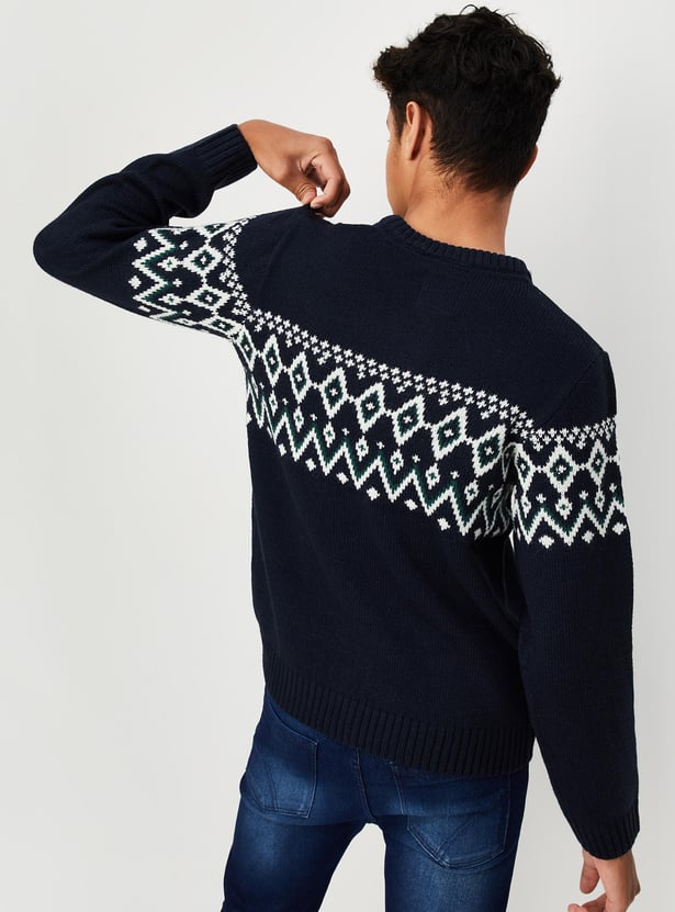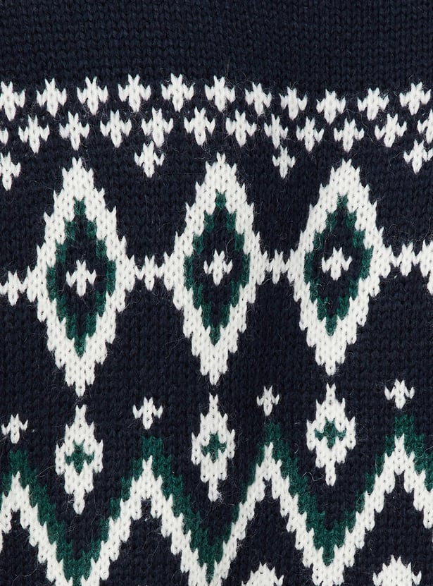 This sweater will keep your kids warm and cosy while they go outside to play during the winter. It features a Fair Isle pattern, full sleeves, a crew neck and ribbed hem.