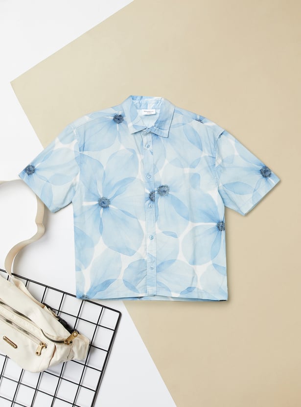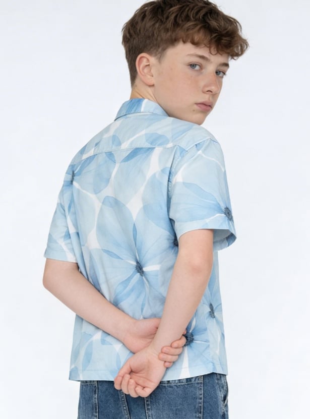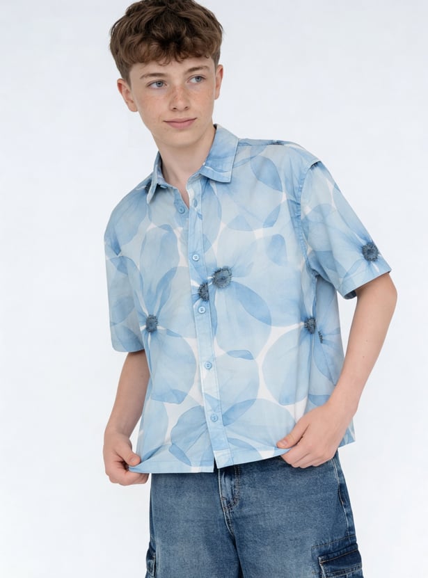 Boys Floral Print Oversized Shirt