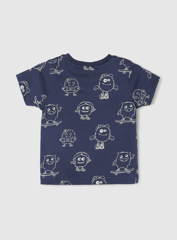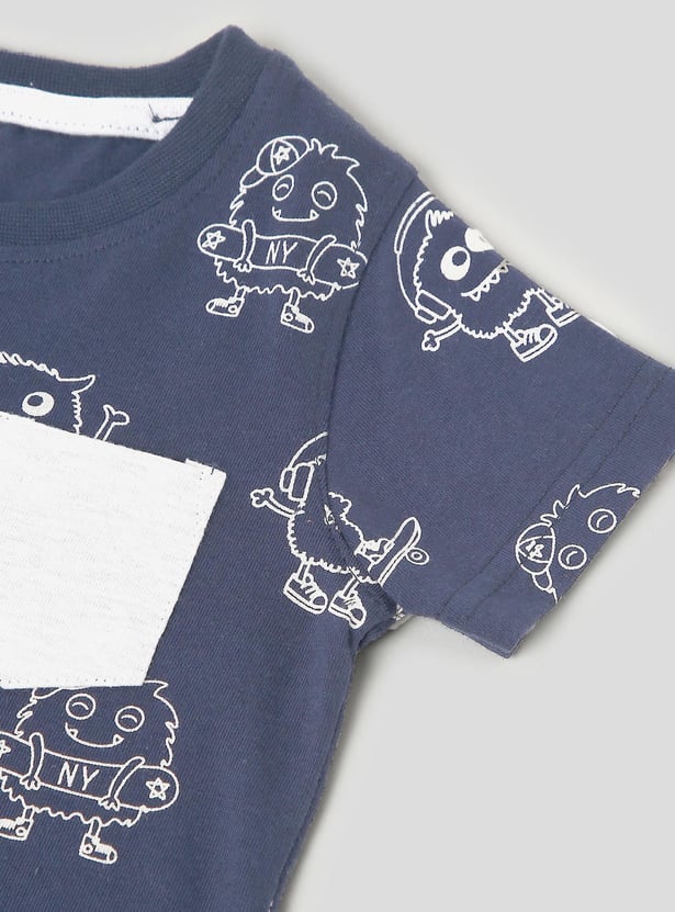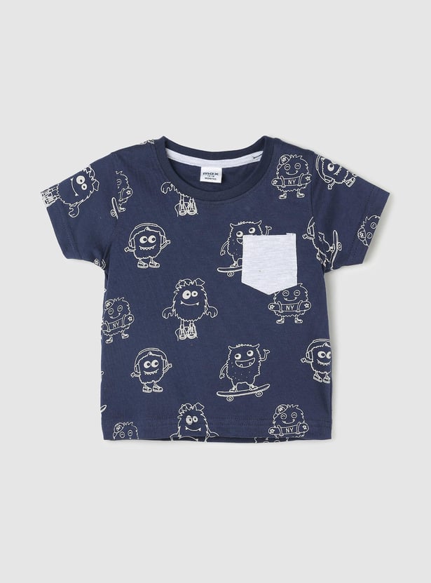 A new day calls for a new trend and your child ought to slay every day with this t-shirt. It is designed with a graphic print on the surface, a patch pocket, a crew neckline, and half sleeves.