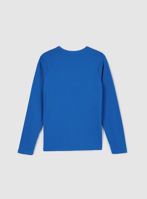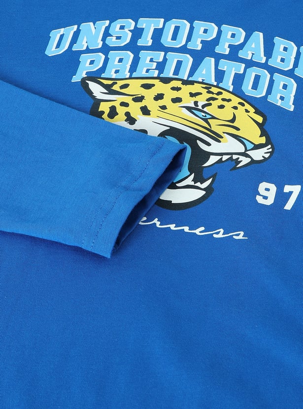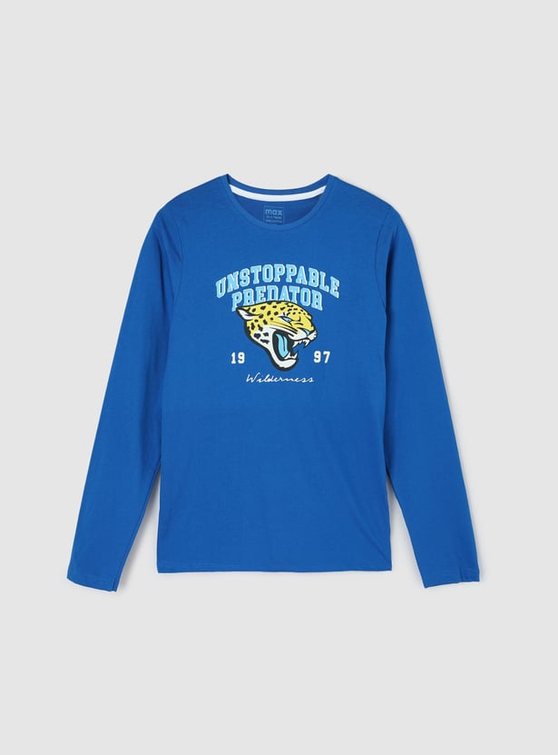 This playful T-shirt is sure to spark a smile on your little one. Featuring a classic crew neck, a graphic print, and full sleeves, it’s perfect for adding a touch of fun to their everyday wardrobe.