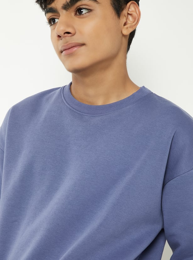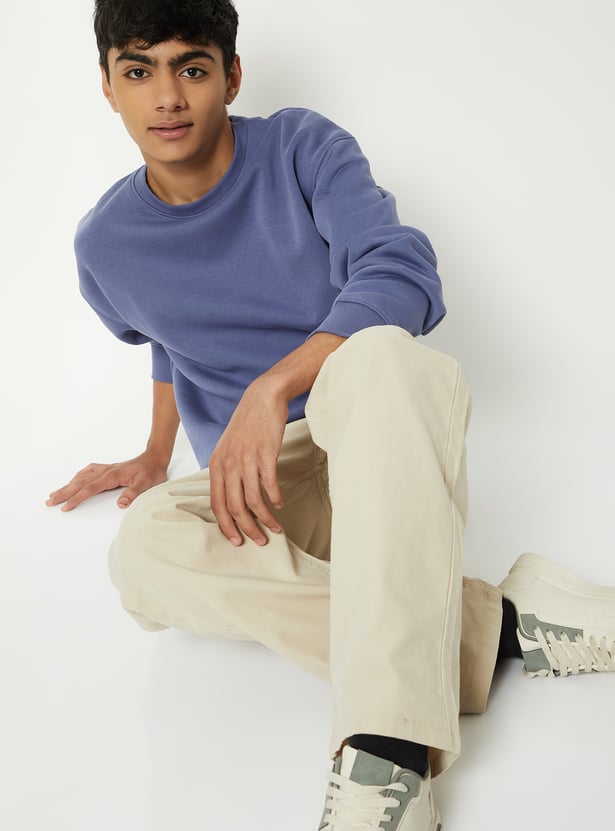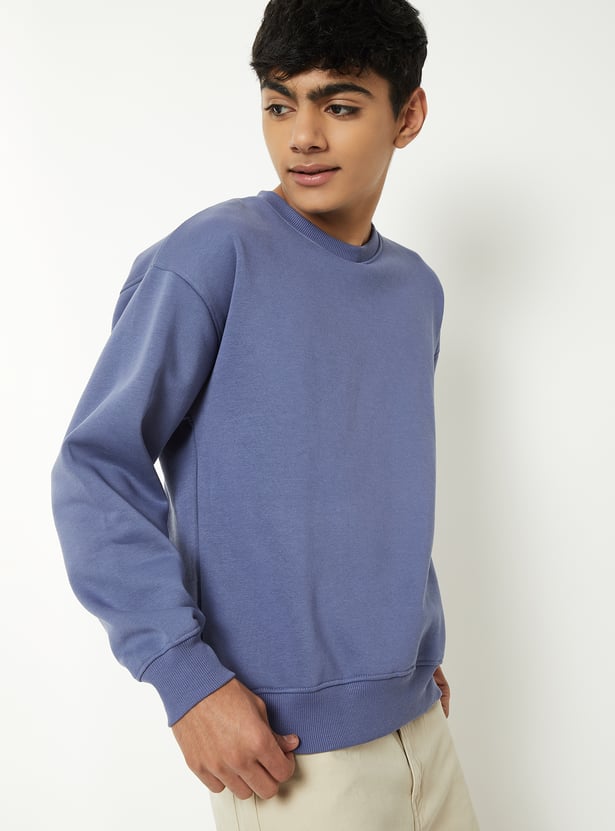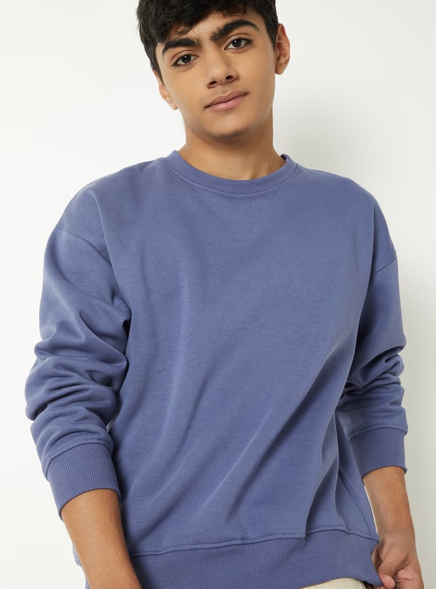 Cozy up in this soft knit sweatshirt, featuring a classic crew neck, full sleeves, and a ribbed hem for a snug, comfortable fit. Perfect for layering on chilly days.