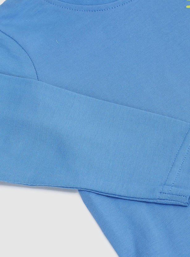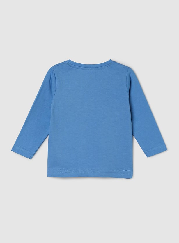 Get your little one vacation-ready with this comfortable and stylish placement printed T-shirt featuring full sleeves and a crew neck. Complete the look with jeans and sneakers.