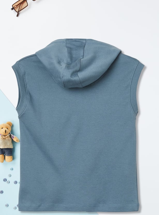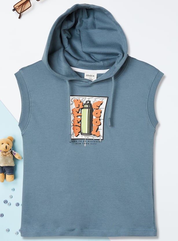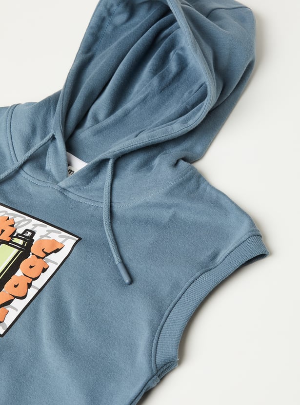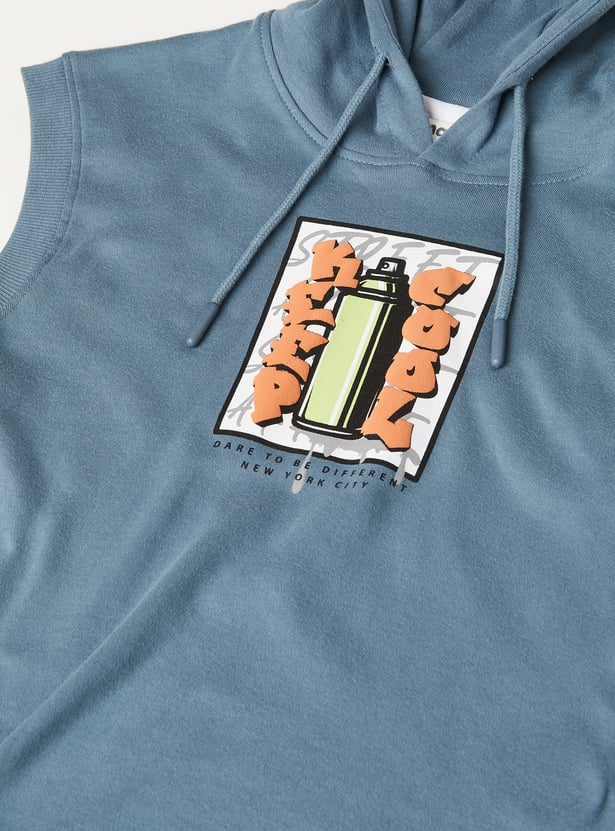 Elevate your casual game with this printed hooded T-shirt. Featuring a sleeveless design and hooded neck for a sporty, laid-back vibe.