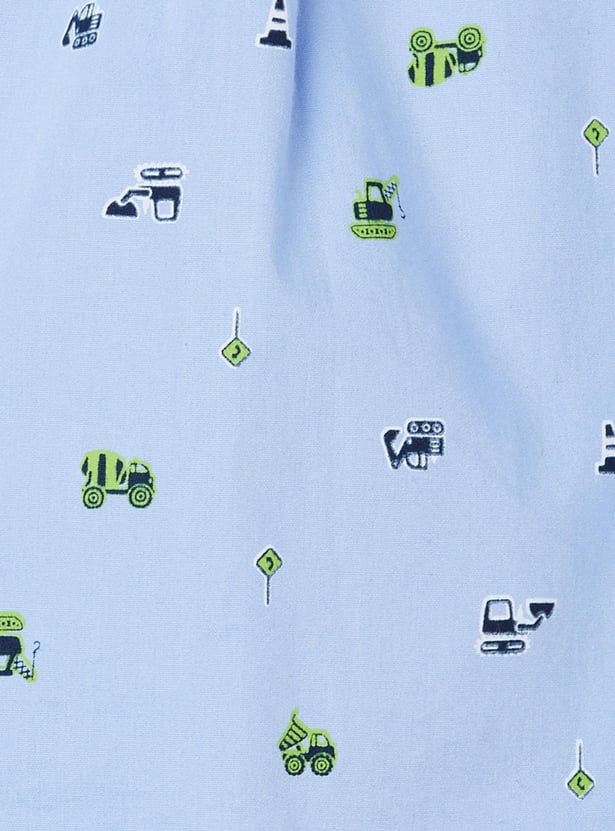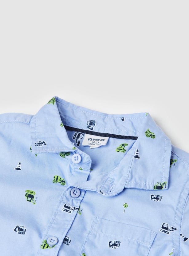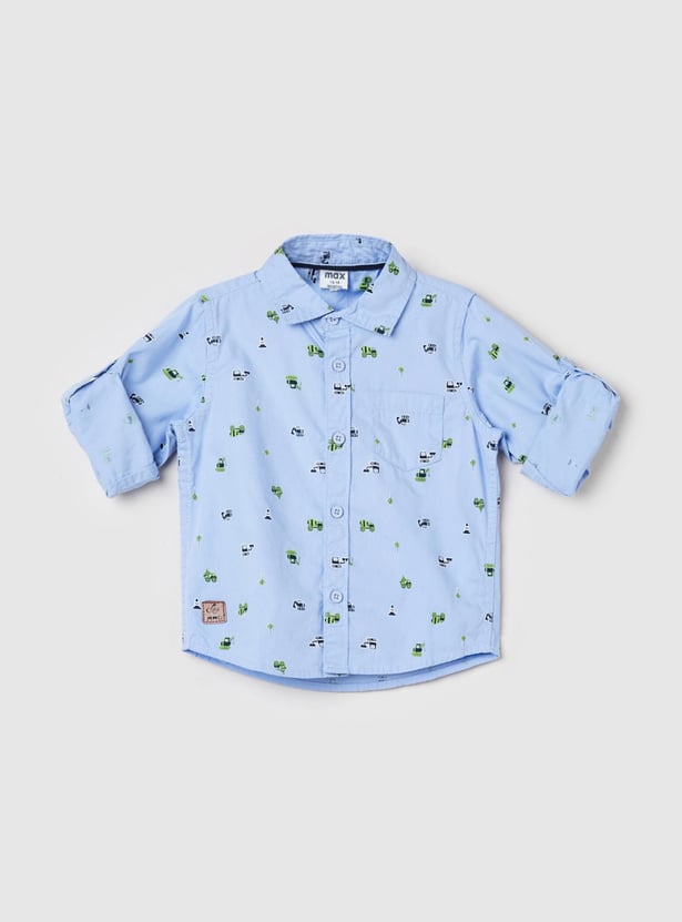 Elevate the look of your little one with this star printed casual shirt that features full sleeves, spread collar, and a curved hemline.