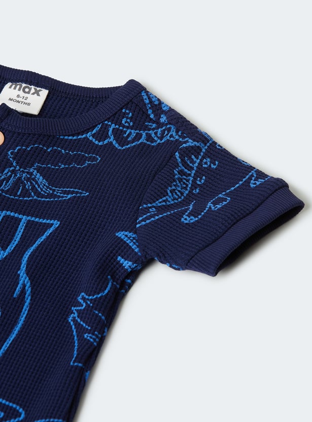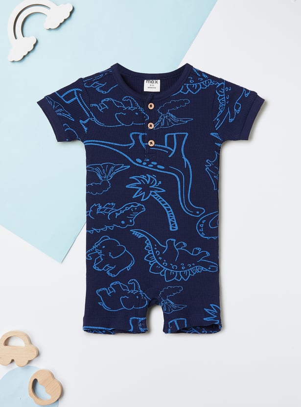 These printed rompers are the perfect mix of adorable and practical! Featuring a crew neck and half sleeves, they keep your little one comfy and stylish. The button closure near the diaper area makes changing quick and easy, while the cute print adds a fun touch to their outfit!