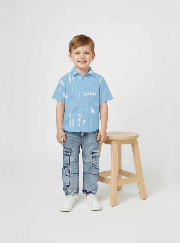 A cool half-sleeve printed shirt featuring a resort collar and a neat button-down front, perfect for easy everyday style.