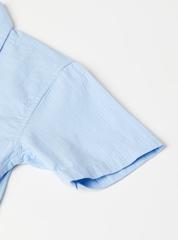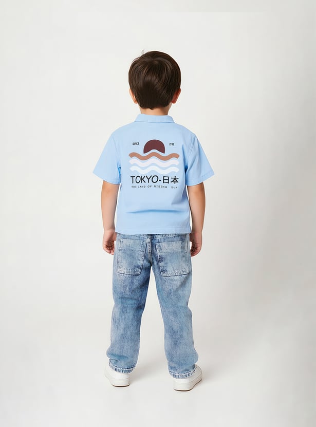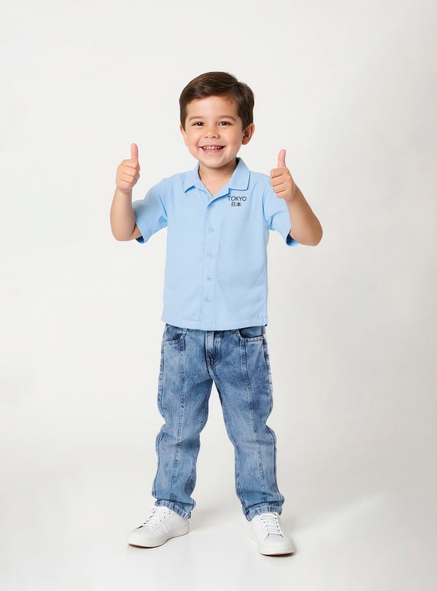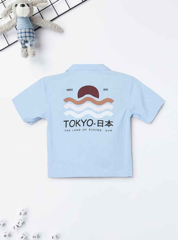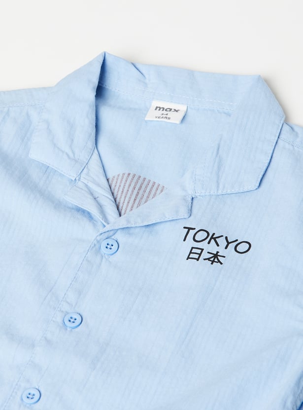 Add a laid-back vibe to your wardrobe with this printed shirt, featuring a resort collar, button placket, and half sleeves. Its breezy design makes it perfect for warm-weather days.