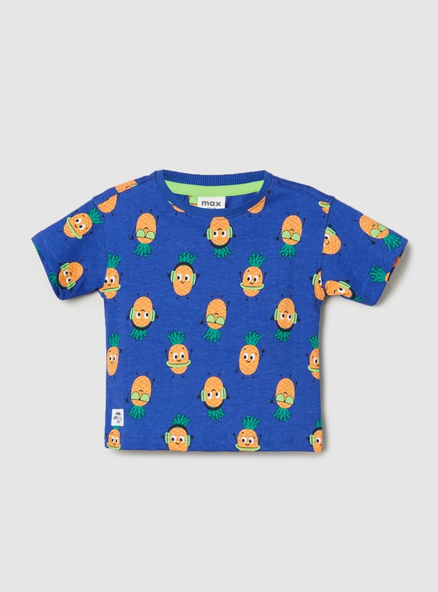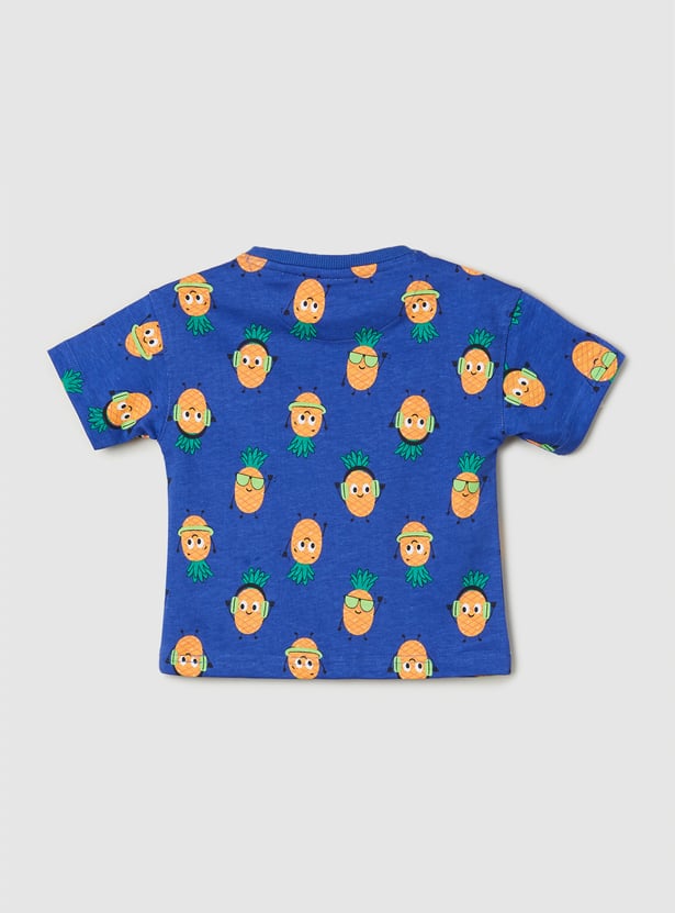 Embark on tropical adventures with this vibrant summer set, tailor-made for his active lifestyle. The crew neck T-shirt boasts eye-catching graphic prints, paired perfectly with comfortable half sleeves. Meanwhile, the drawstring waist shorts offer practicality with cross pockets and a back patch pocket.