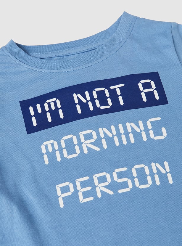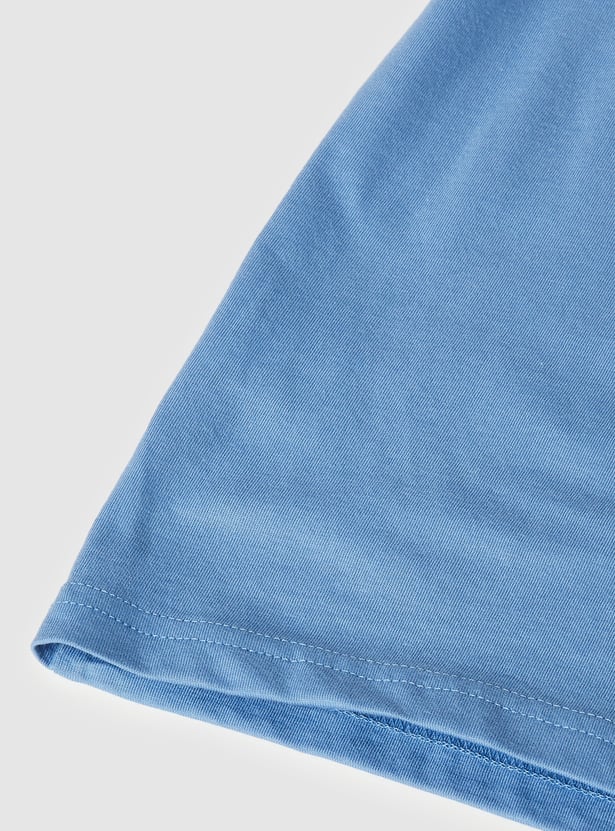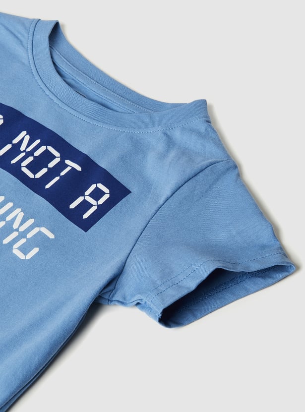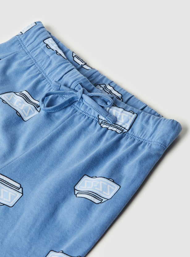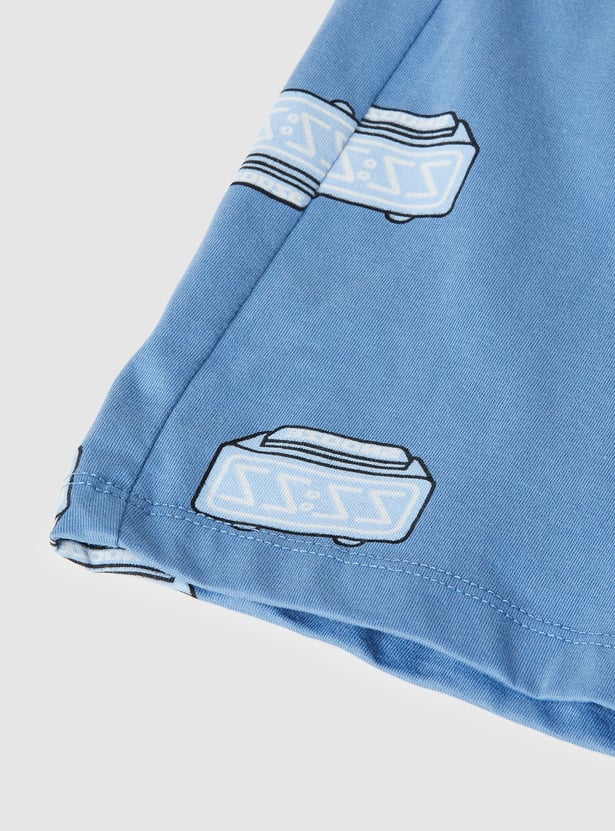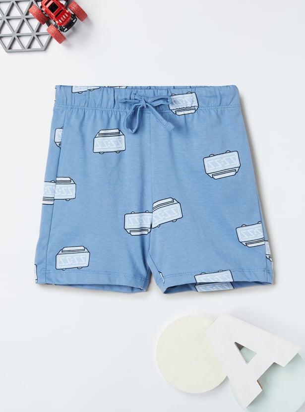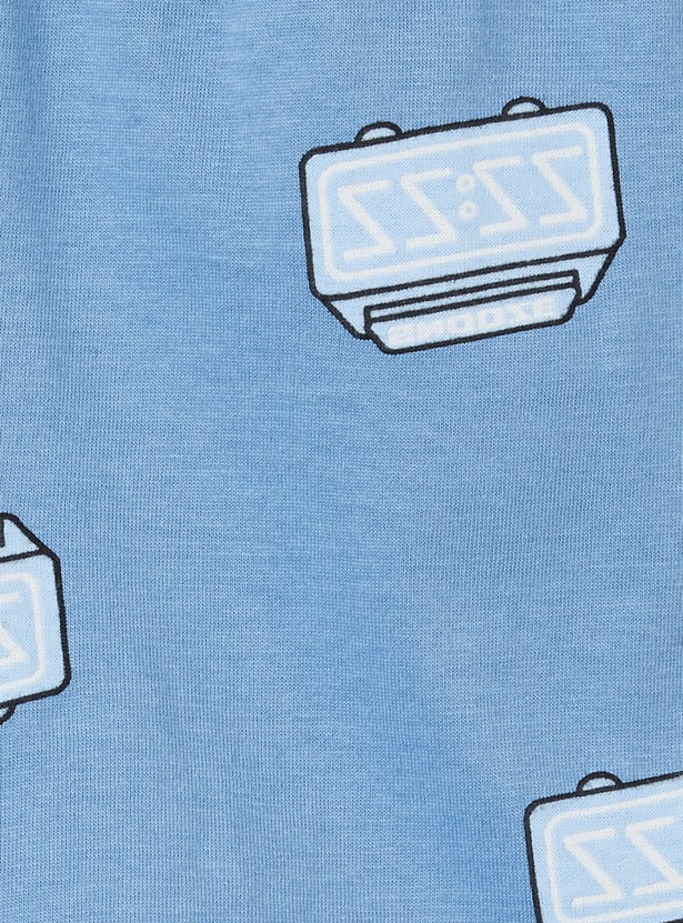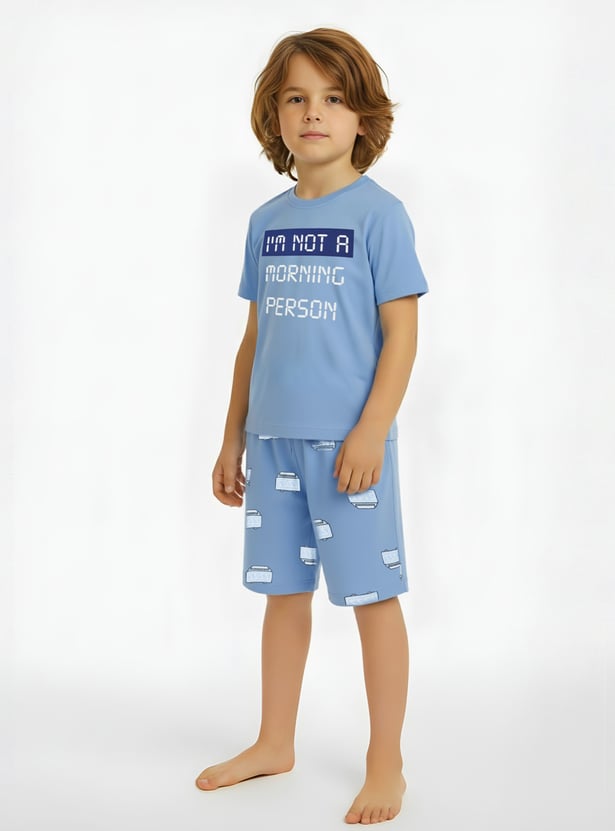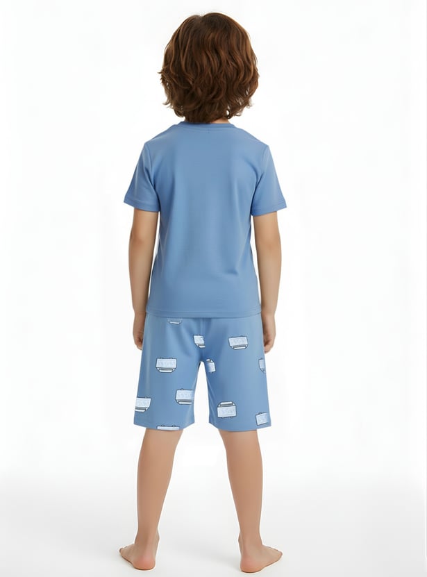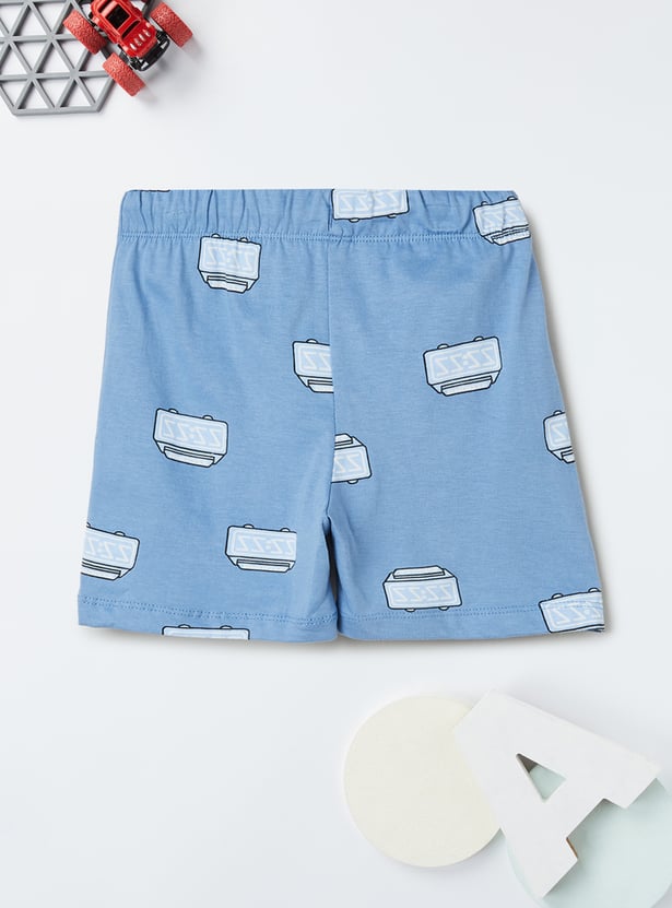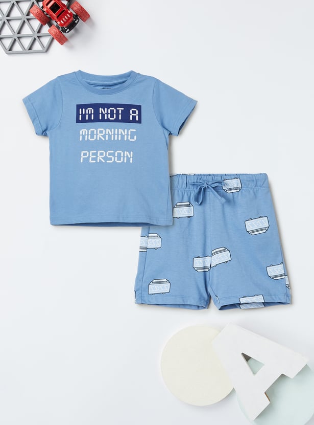This printed shorts set features a stylish printed t-shirt with half sleeves and a crew neck for a comfortable fit. Paired with printed shorts that have a drawstring closure, it offers a relaxed and trendy look, perfect for casual days or lounging.