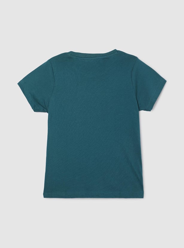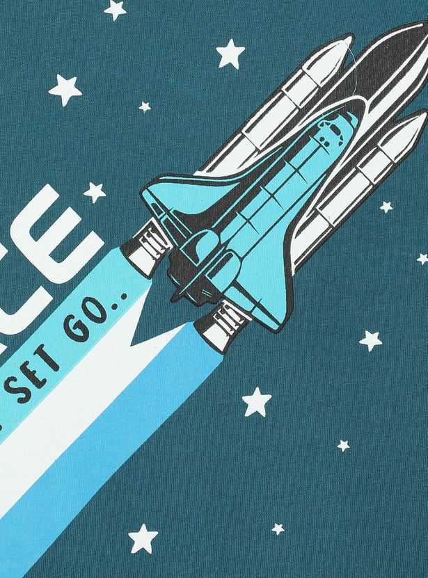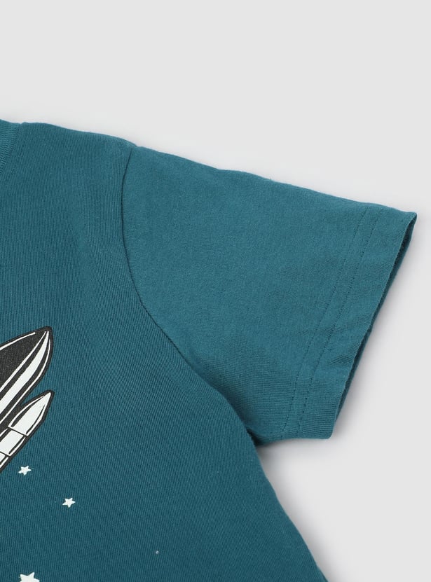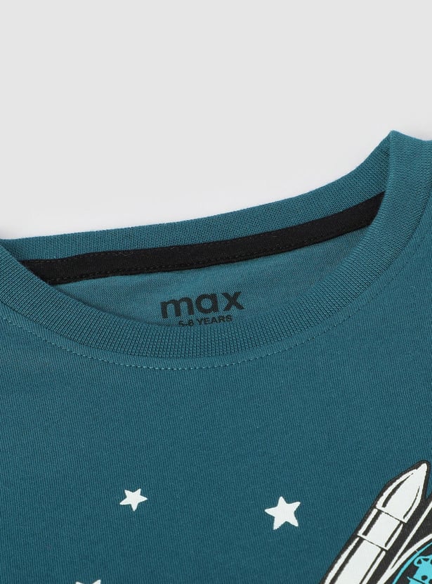A perfect addition to your little one's wardrobe, this t-shirt ensures comfort throughout the day. It is adorned with a surface print, short sleeves, and a classic crew neckline.