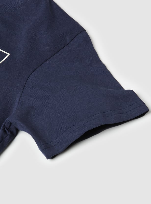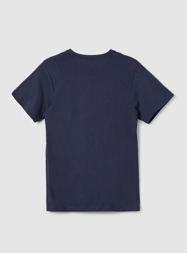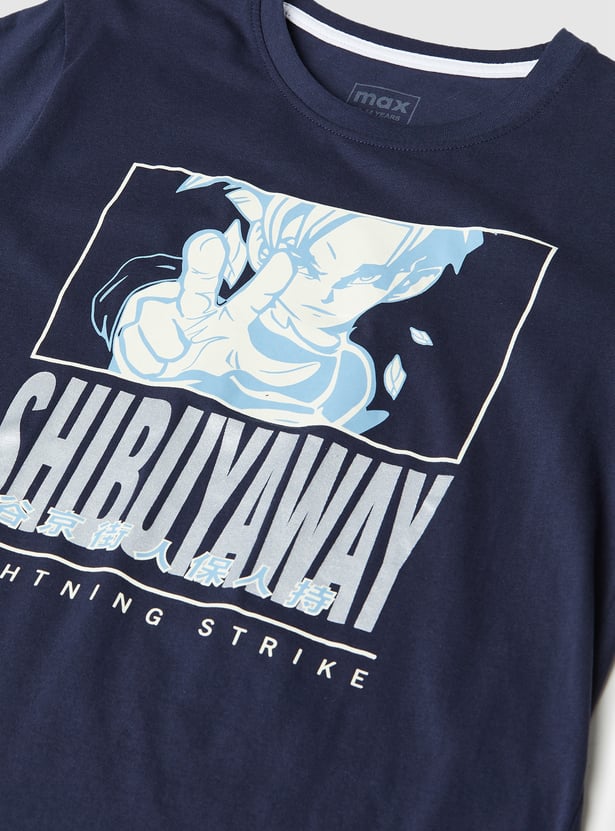 Make a statement with this printed T-shirt, featuring a classic crew neck and half sleeves for a relaxed, stylish fit. The bold print adds a fun, eye-catching element to this wardrobe staple.