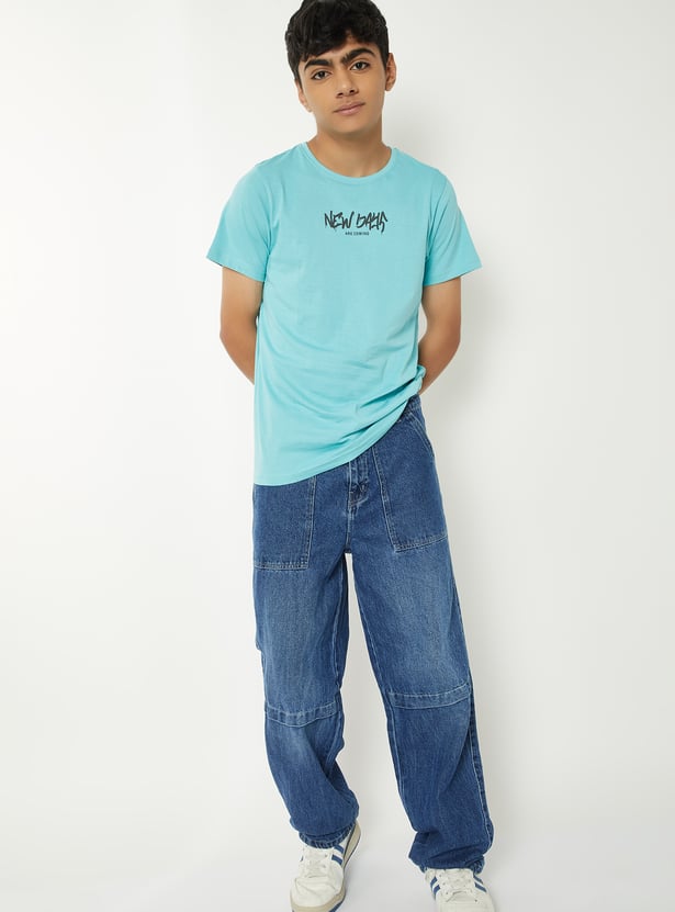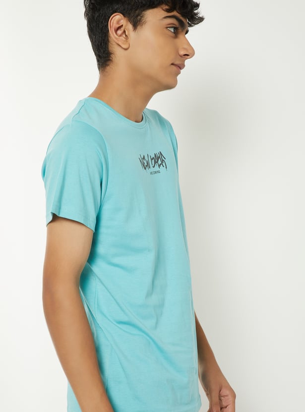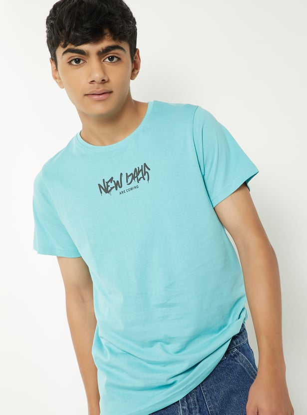 Keep it casual and cool with this printed t-shirt, featuring a classic crew neck and half sleeves for everyday comfort.