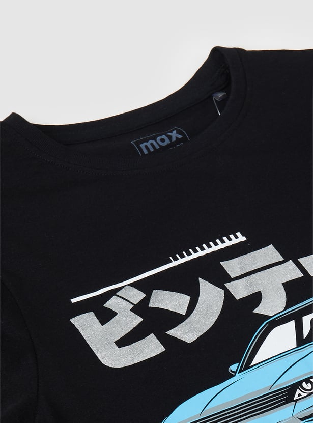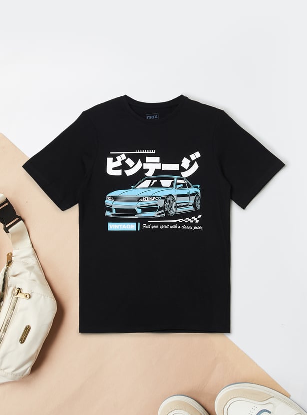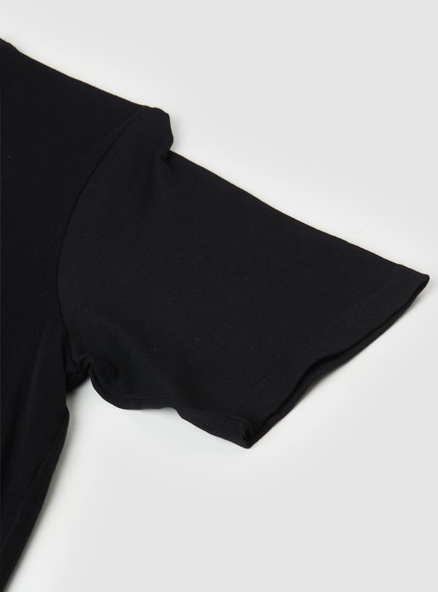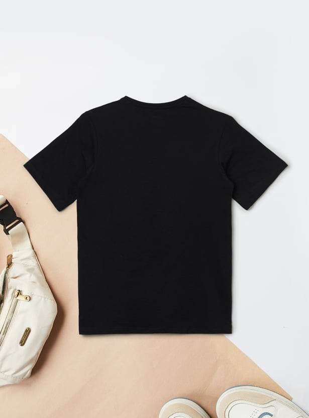 Give your casual basics a fun upgrade with this printed T-shirt featuring a classic crew neck and half sleeves. Soft, easy, and versatile, it’s perfect for everyday comfort.