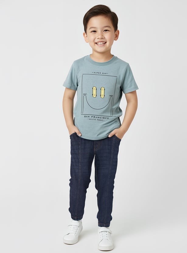 Stay casual and comfortable in this printed t-shirt featuring a classic crew neck and half sleeves. Perfect for everyday wear with a relaxed vibe.