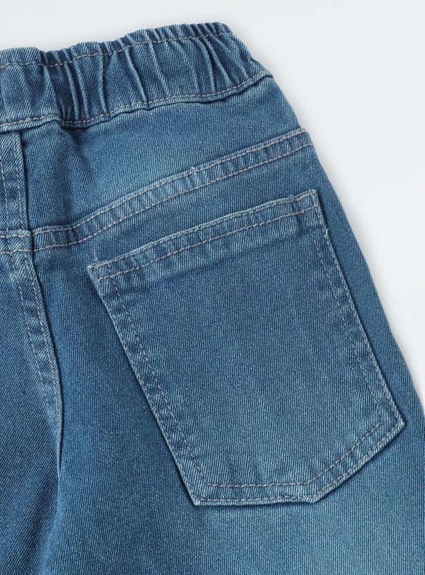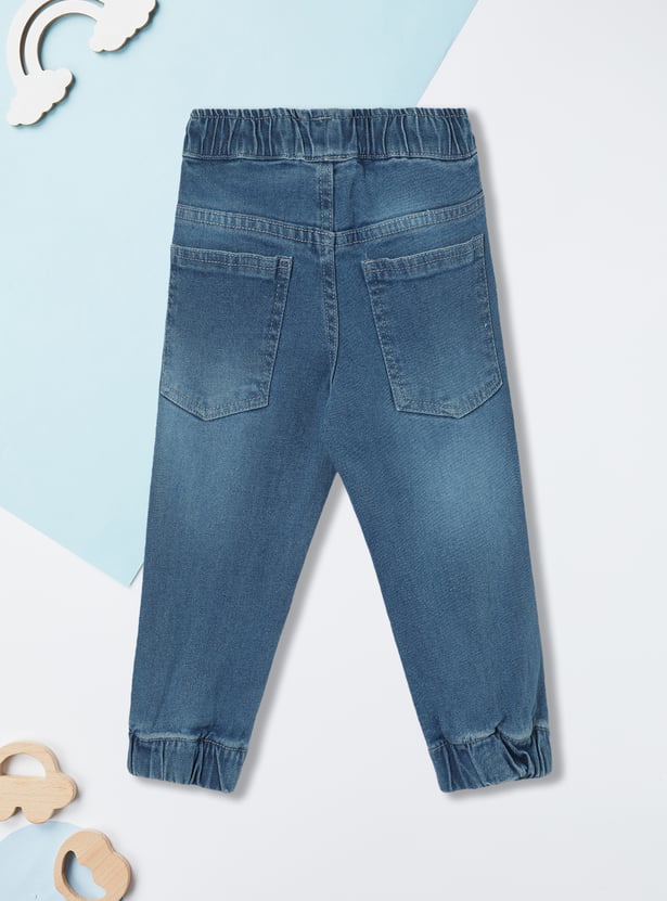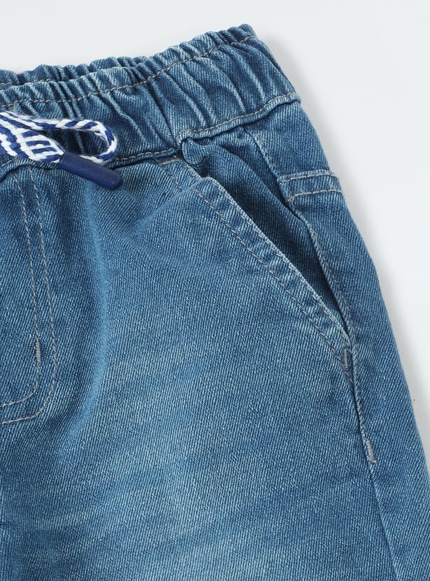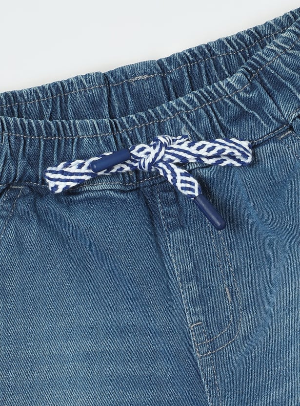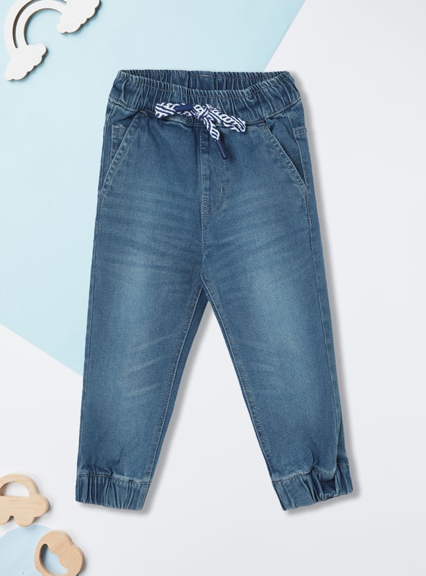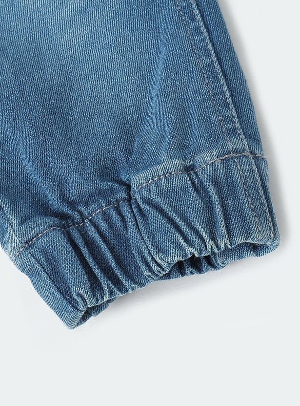 Refresh your kid’s wardrobe with this pair of denim joggers, designed with a trendy washed surface. Featuring an elasticated waistband and pockets for practicality, and a drawstring closure for a secure, adjustable fit, these joggers are a versatile and stylish choice for everyday wear.