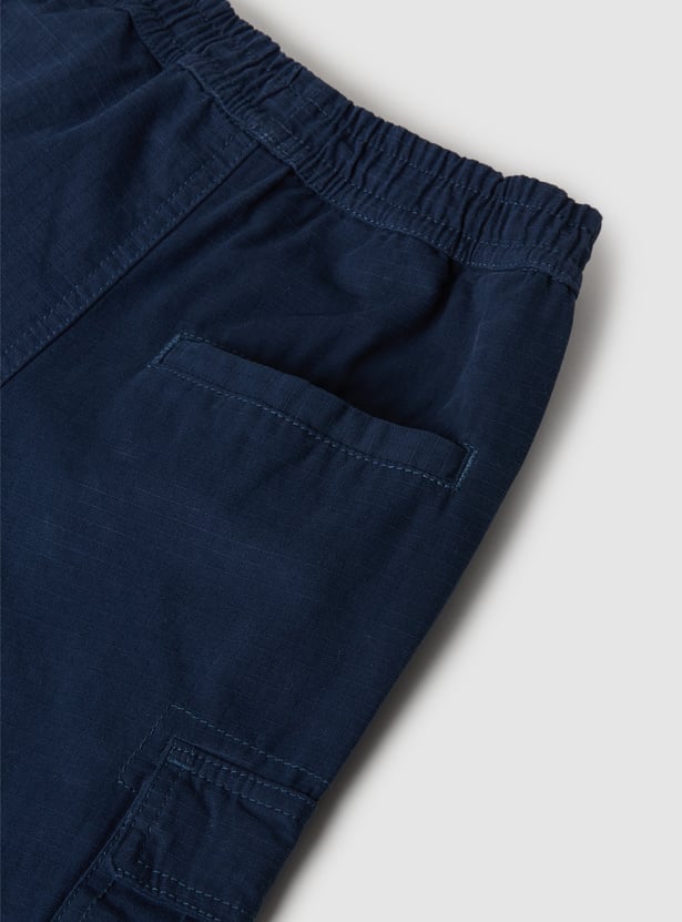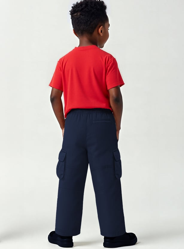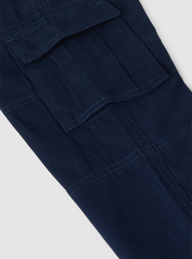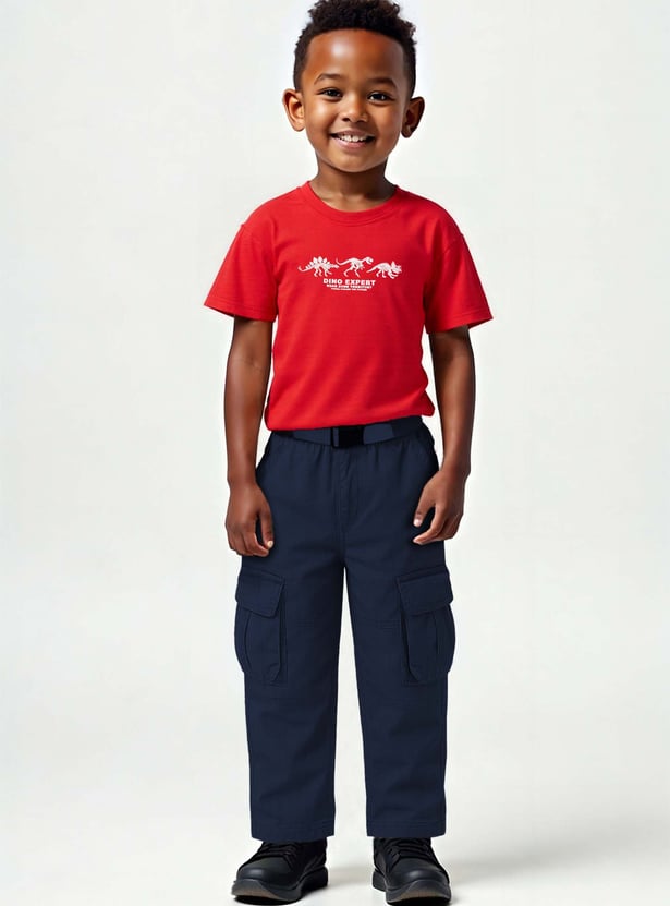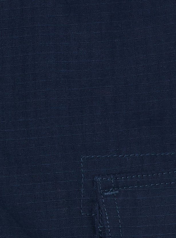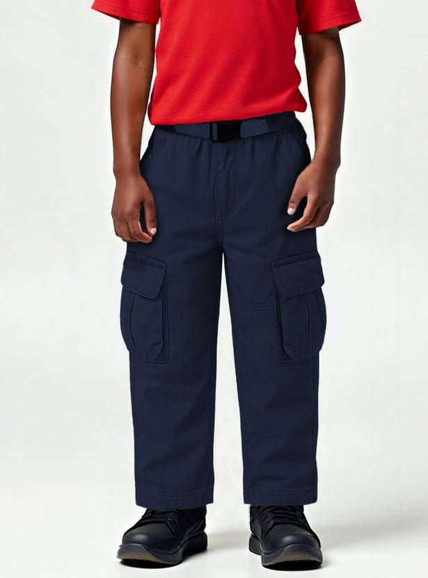 Stay stylish and utility-ready with these solid mid-rise cargo trousers, featuring a push clasp closure and a structured belt for a secure, polished fit. Designed with multiple pockets, they offer both function and fashion for everyday wear.