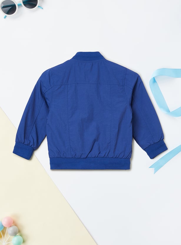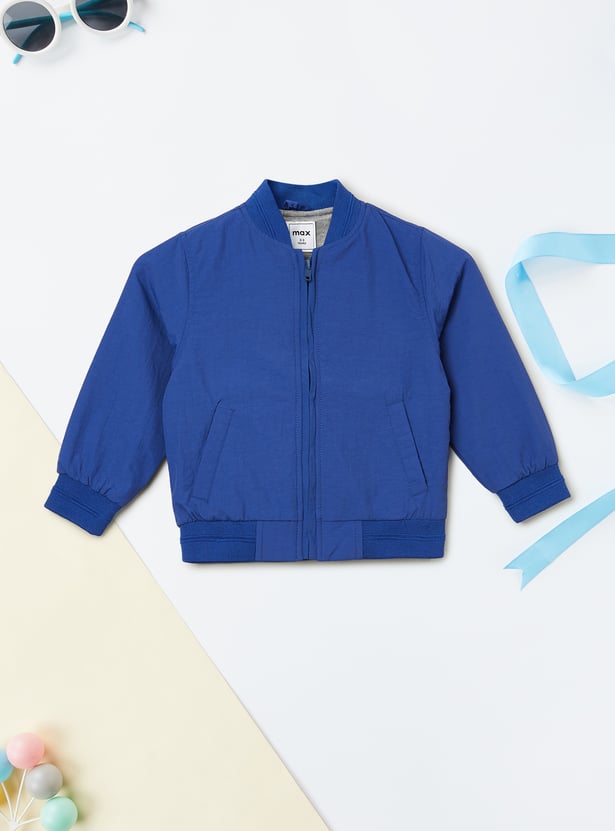 Keep your little one cozy and stylish with this solid Jacket featuring full sleeves and a zip closure with a baseball collar. it's perfect for chilly days, offering warmth and comfort with a soft teddy fabric.