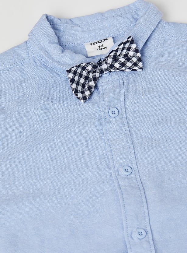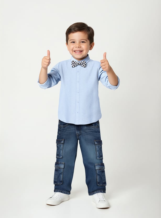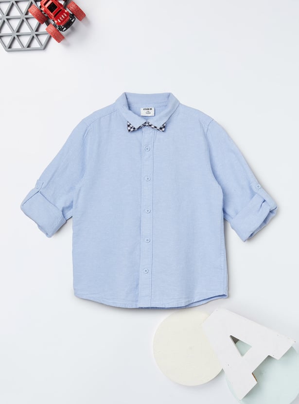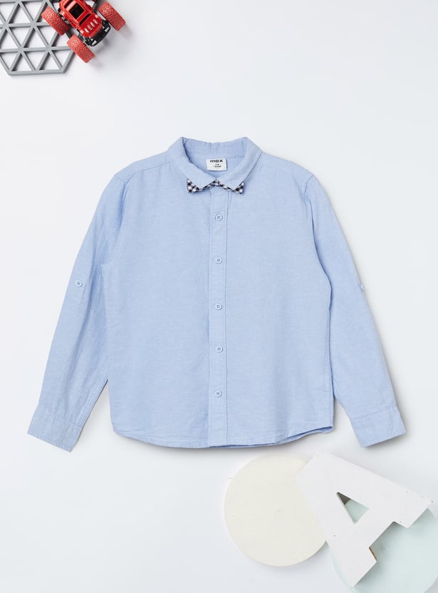 Make a statement in effortless style with this solid oversized shirt, designed with a spread collar and full sleeves finished with buttoned cuffs and a bow. Its relaxed fit and refined detailing strike the perfect balance between comfort and sophistication.