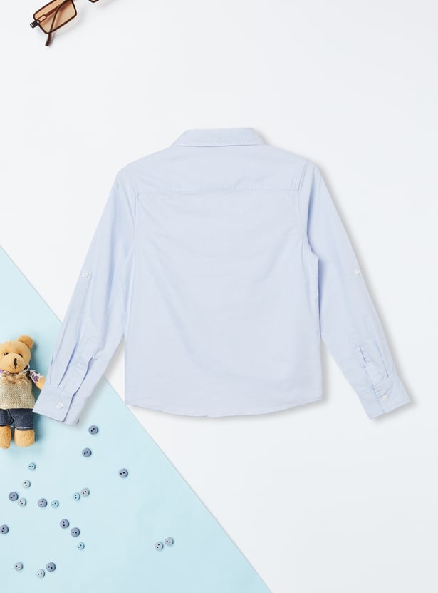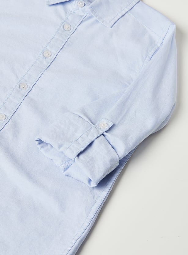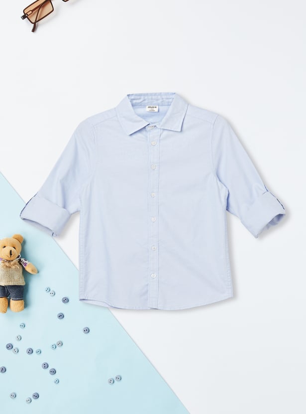 Effortlessly cool, this solid oversized shirt features a spread collar, button placket, and full sleeves with button cuffs and fold tabs—perfect for relaxed yet polished styling.