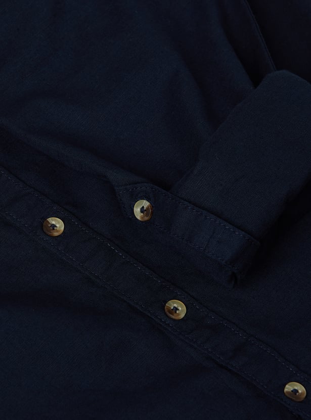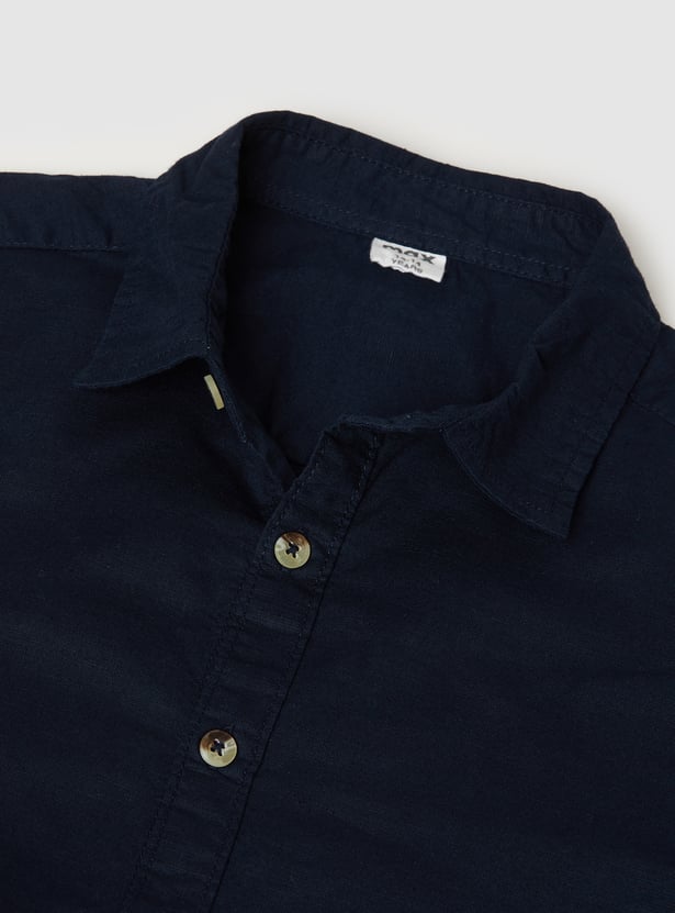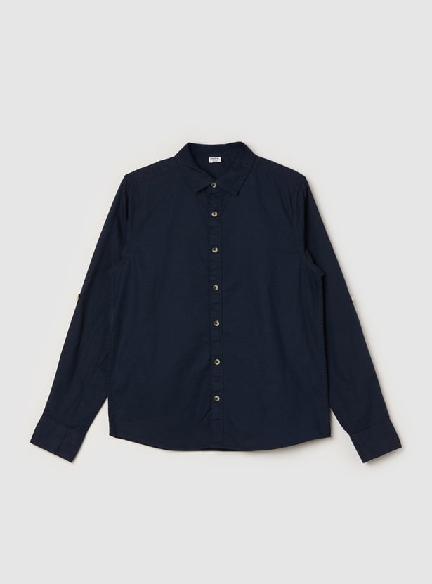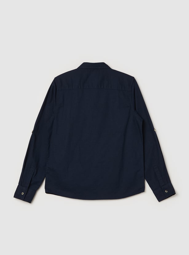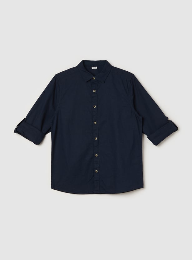 Upgrade your little ones's wardrobe with this solid shirt, featuring a classic spread collar and a button placket for a polished look. Designed with full sleeves and button cuffs, it also includes foldover tabs for a versatile rolled-up style.