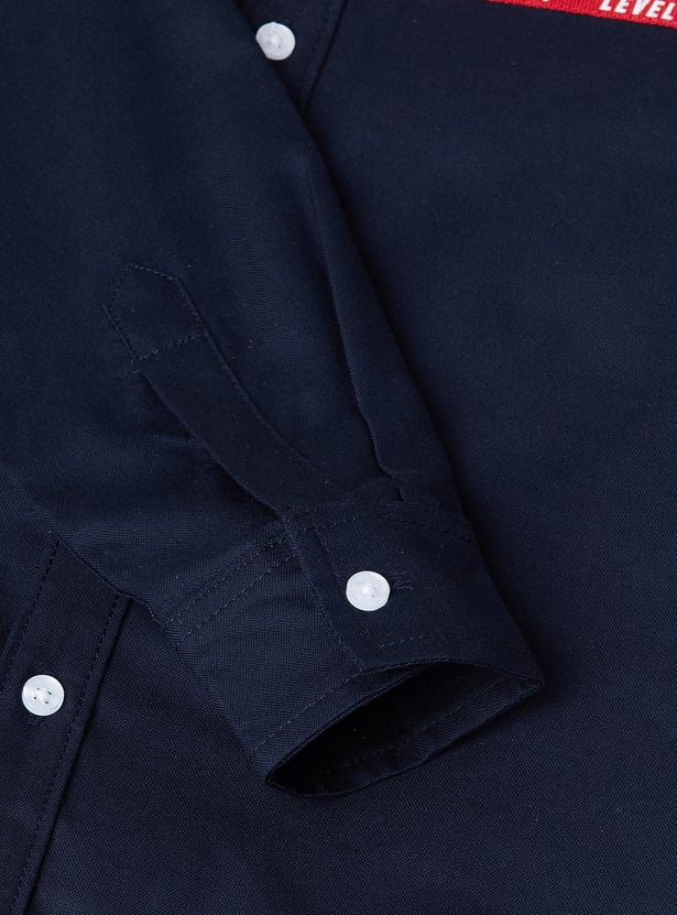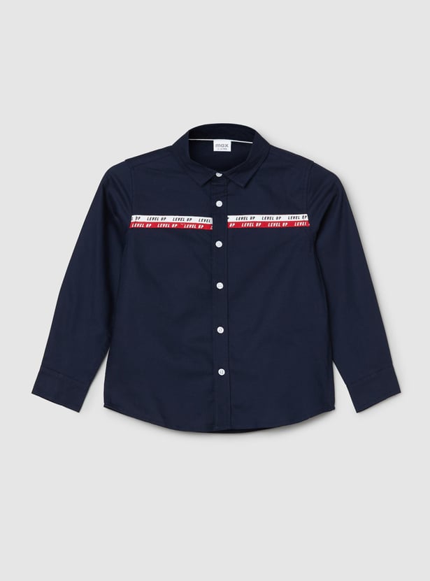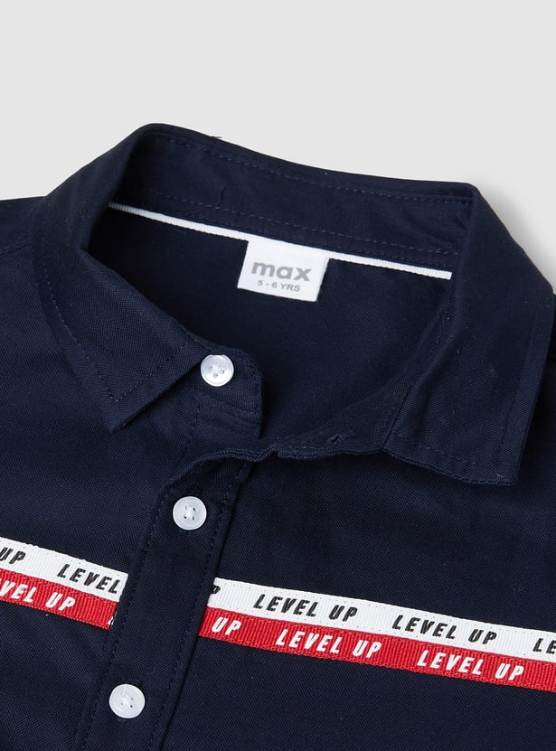 Boys Solid Tape Detailed Shirt