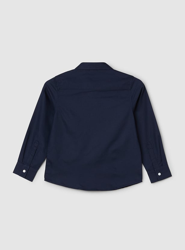 Watch your little ones' day being all smiles in this solid shirt featuring a tape detail at the chest, spread collar, and long sleeves with curved hem making every day a playdate with laughter.