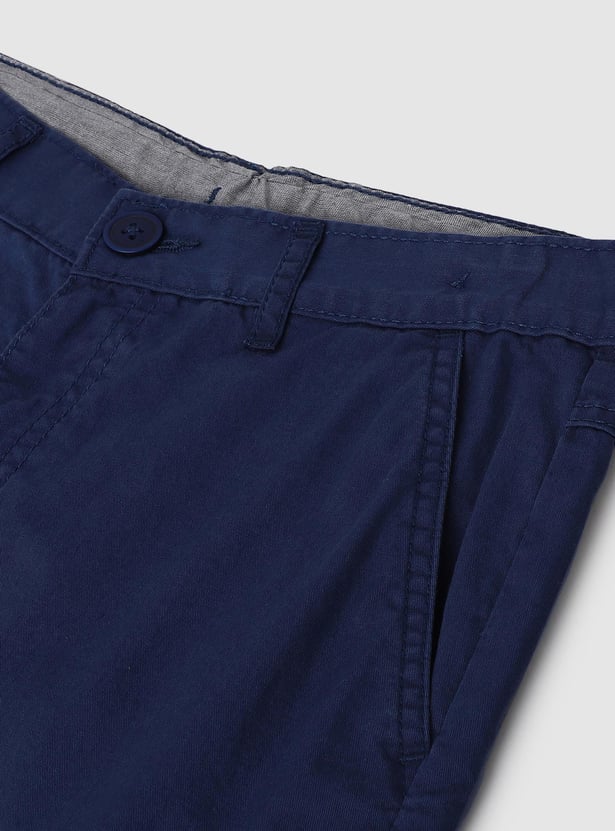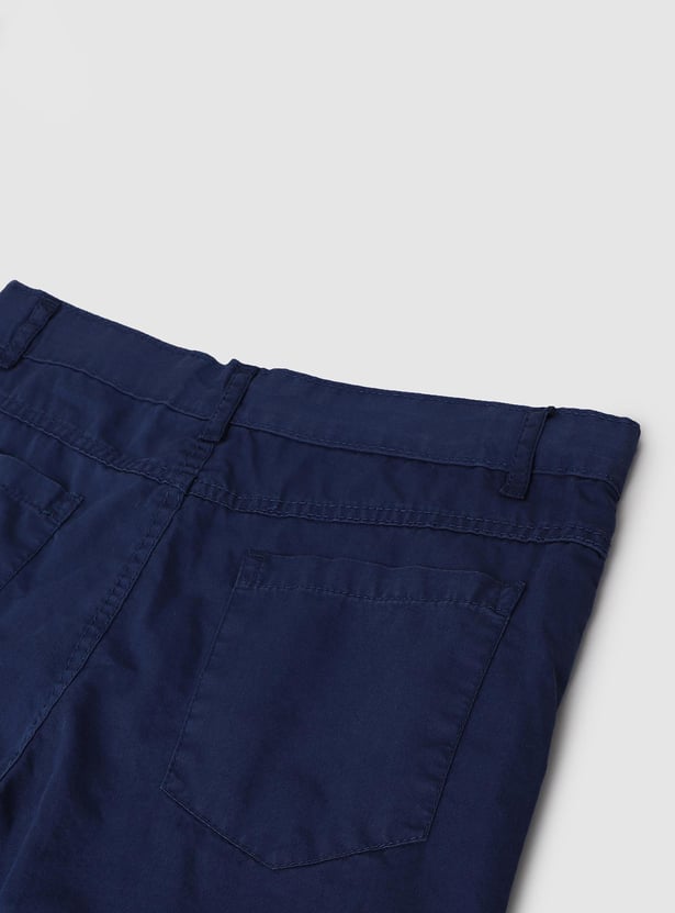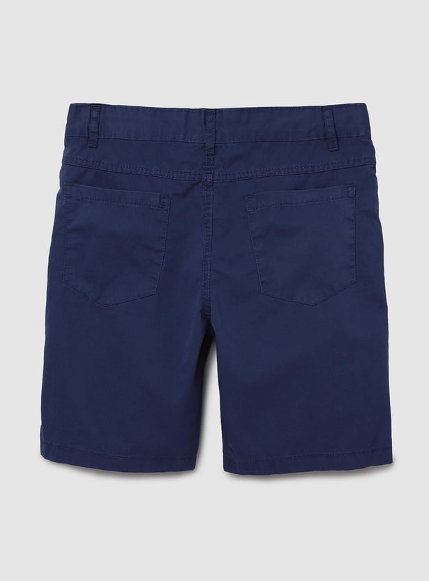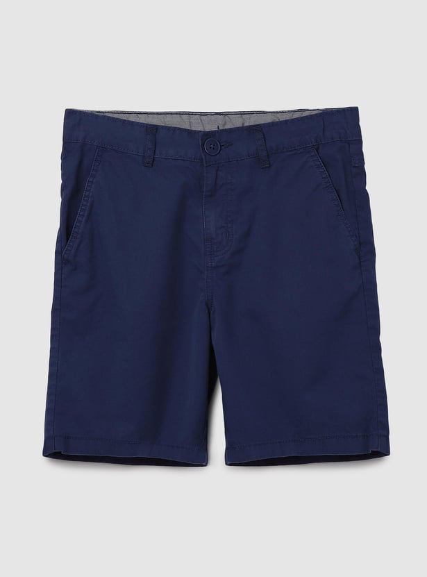 Make game time fun for your little one with this pair of shorts that features a solid design and a button-up waist with slanting side pockets.