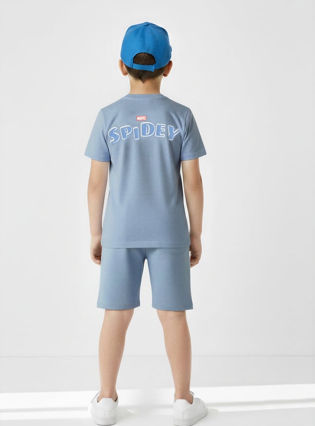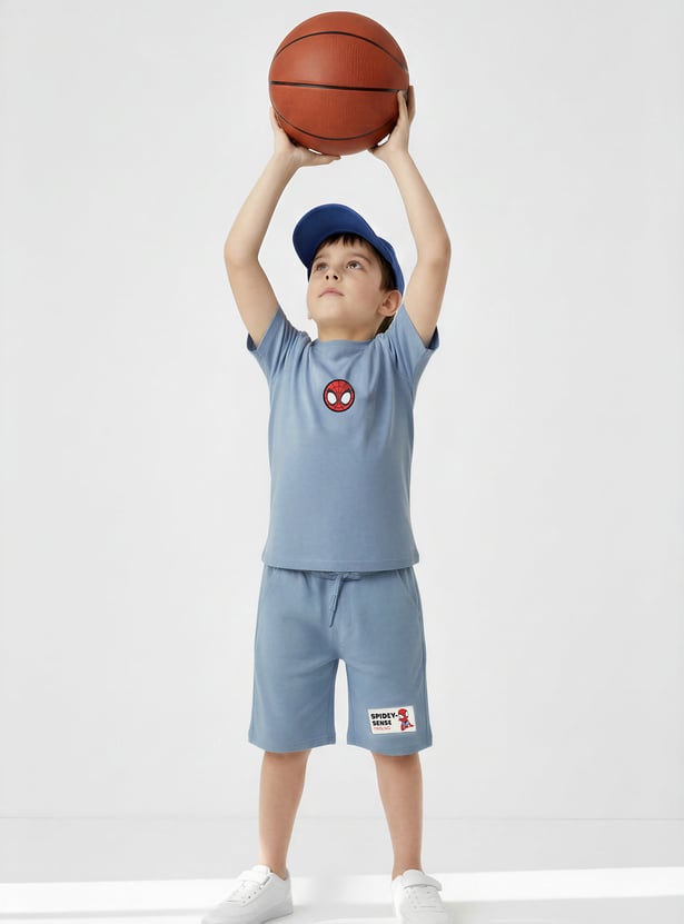Fun and casual, this Spider-Man shorts set includes a T-shirt with a classic crew neck and half sleeves, featuring bold superhero-inspired styling. It is paired with matching shorts designed with a comfortable drawstring closure and practical pockets