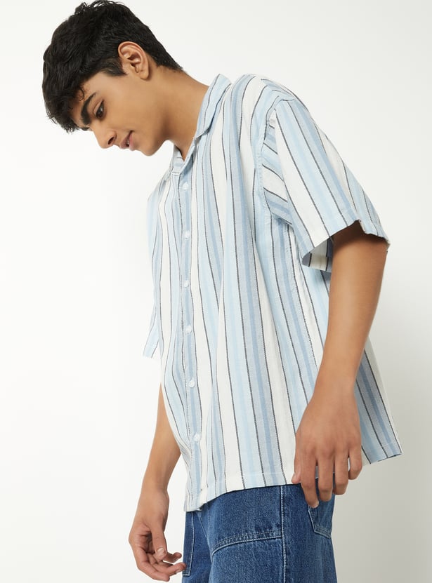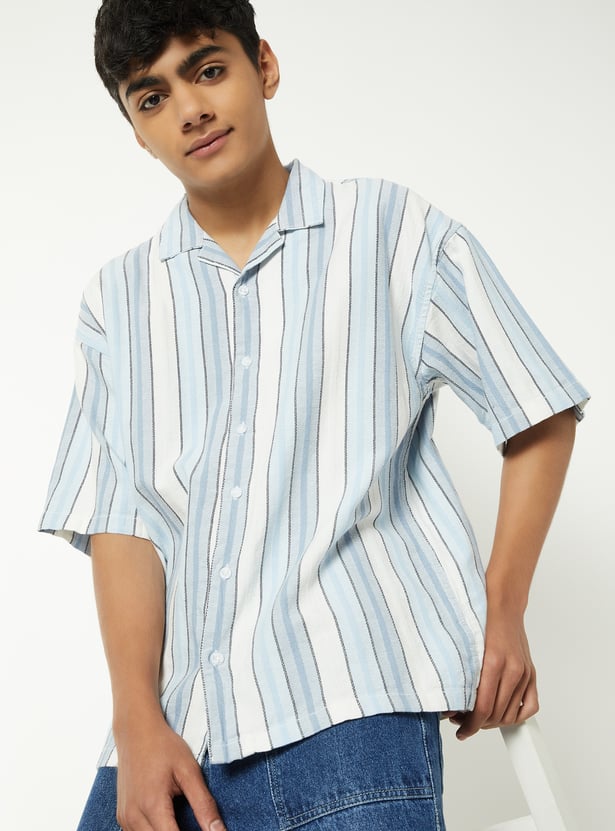 Boys Striped Oversized Resort Shirt
