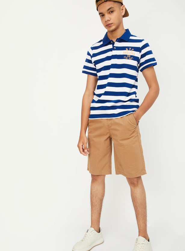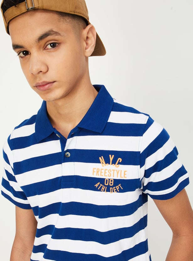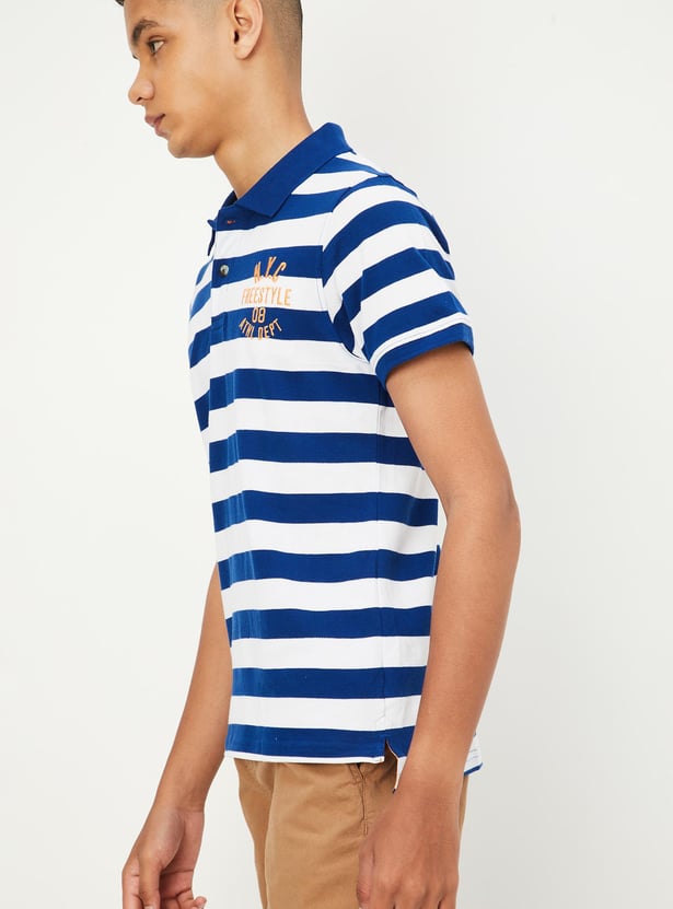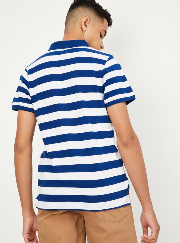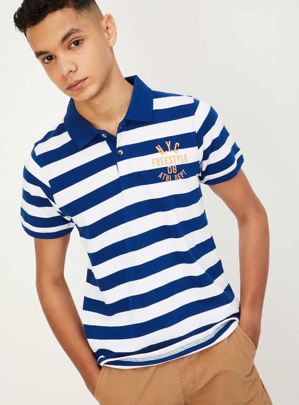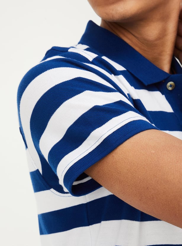 Add a dash of flair to your child's wardrobe with this striped polo T-shirt. Complete with a classic polo collar and short sleeves, it's a versatile piece.