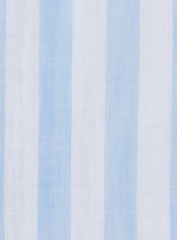 Give his wardrobe a breezy upgrade with this striped resort shirt, featuring a Cuban collar, half sleeves, and a button placket for relaxed comfort and effortless style.