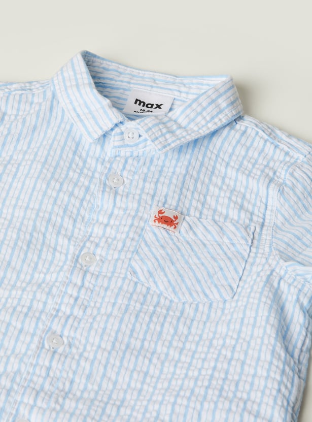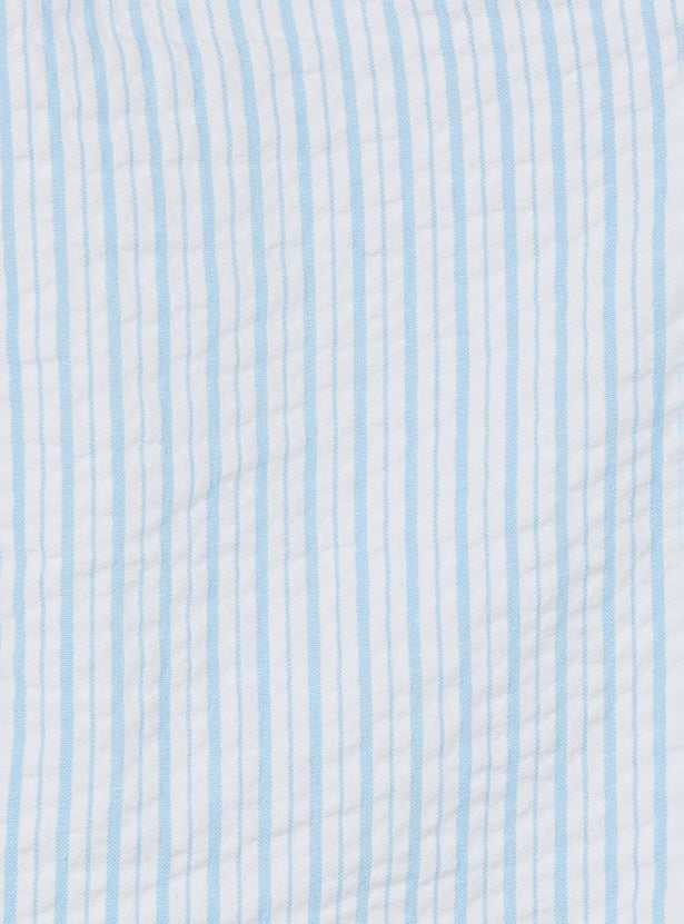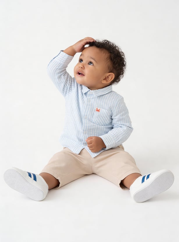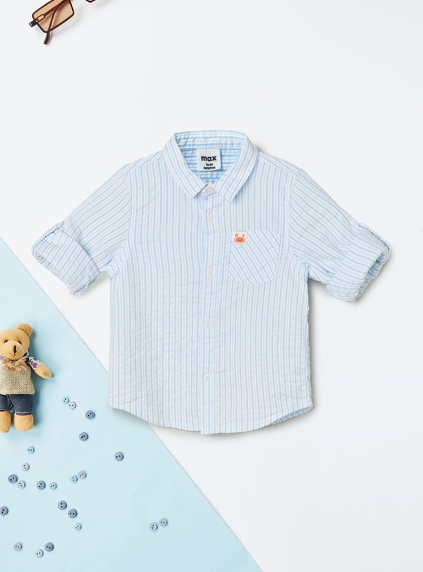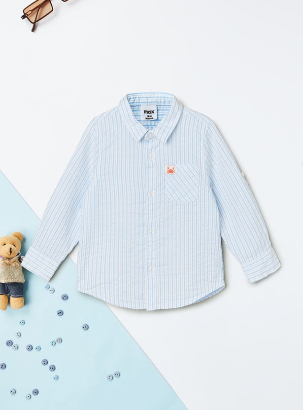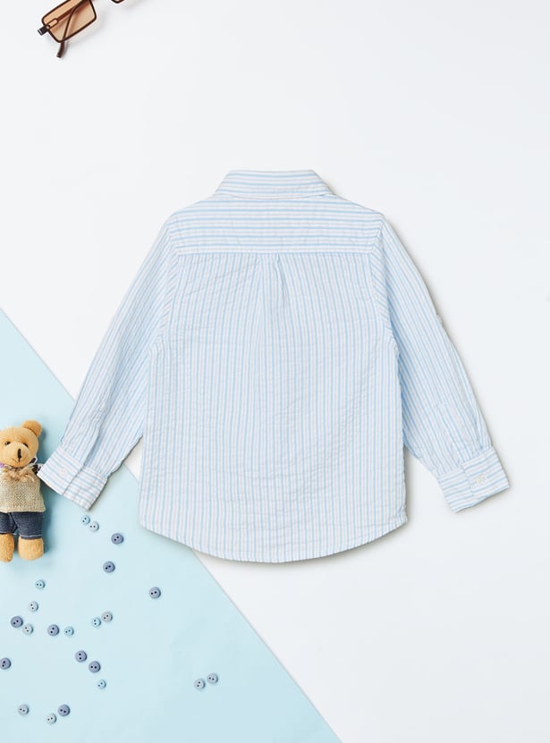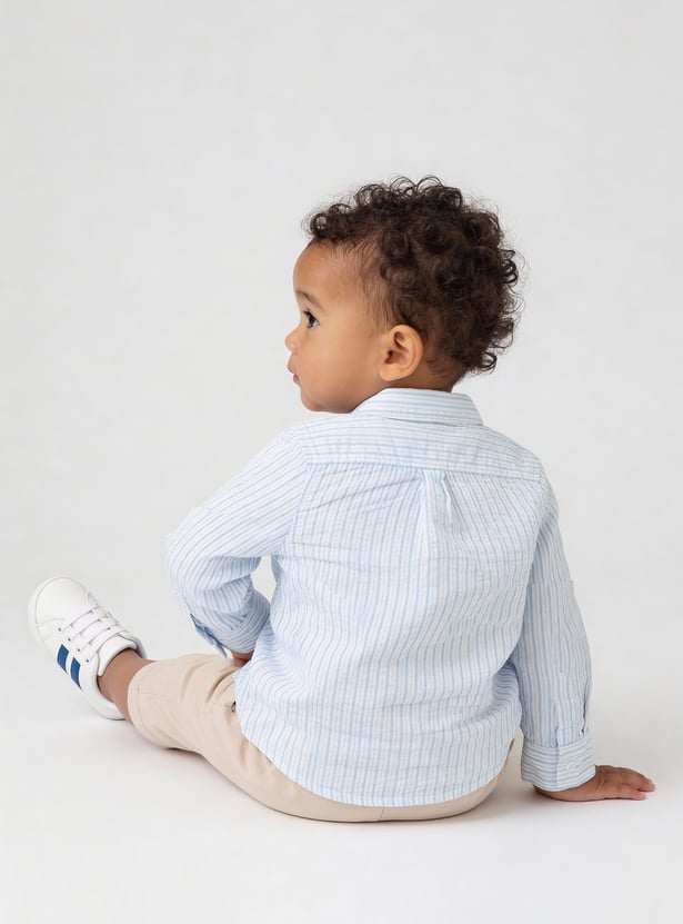 This yarn-dyed striped shirt features a classic shirt collar, full sleeves, and a neatly placed chest pocket for added detail. The yarn-dyed stripes ensure lasting colour and a crisp, structured look.