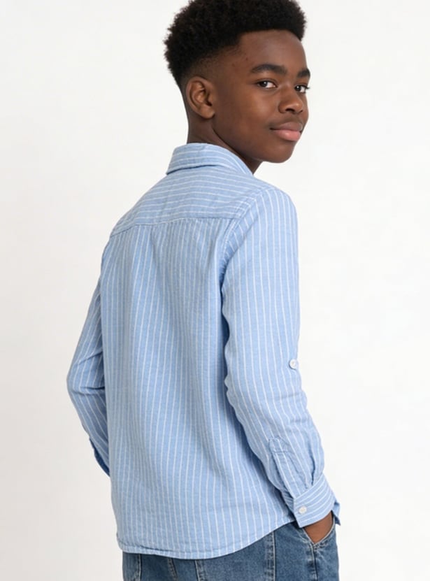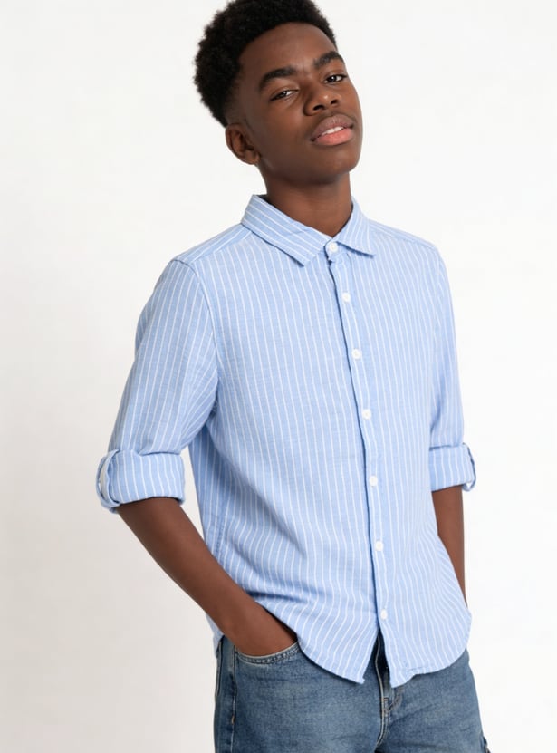 Classic and versatile, this striped shirt features a smart spread collar and a neat button placket for a polished look. Designed with full sleeves and buttoned cuffs, it offers a tailored finish that works equally well for casual outings.