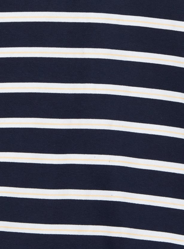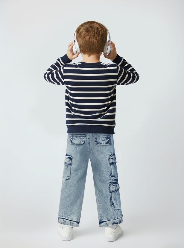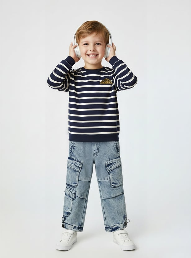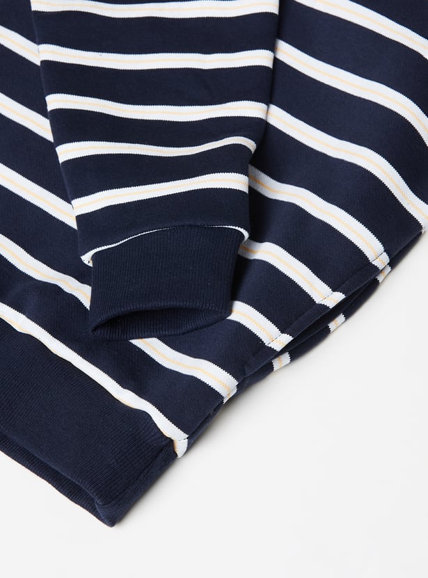 Stay cozy and stylish with this striped sweatshirt. Featuring a classic crew neck, full sleeves, and a ribbed hem, it offers both comfort and a timeless look ,perfect for casual wear.