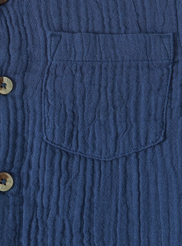 Elevate your casual style with this textured shirt, featuring a spread collar and a button placket for a sharp look. The half sleeves and patch pocket add both comfort and functionality. A versatile piece that’s perfect for everyday wear or a laid-back outing.