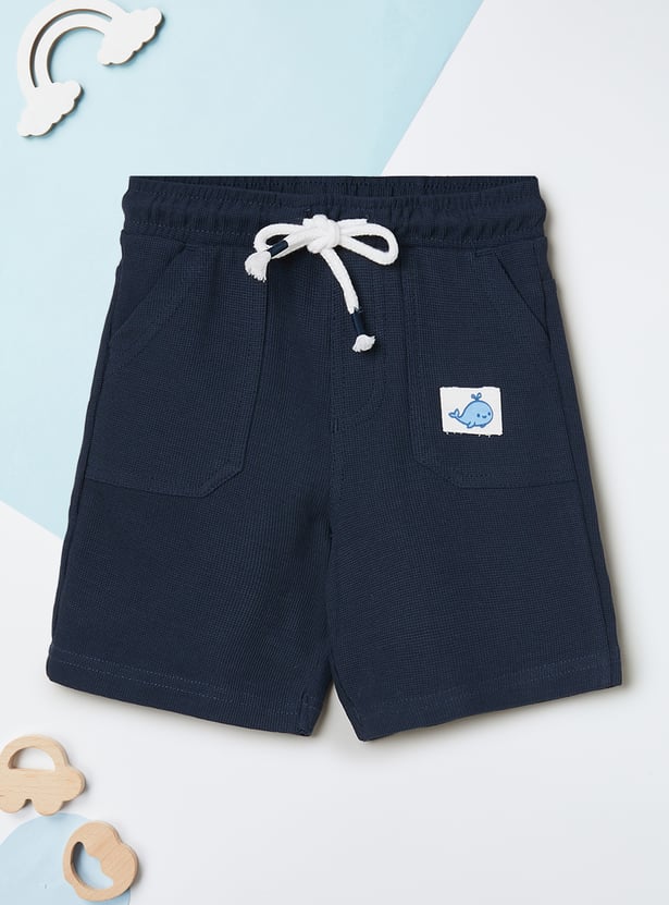 These textured shorts feature a comfy drawstring closure, side pockets, and a cute whale appliqué for playful charm. Soft and easy to wear, they’re perfect for active little ones.