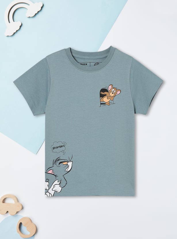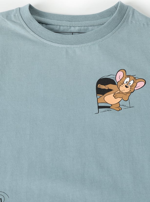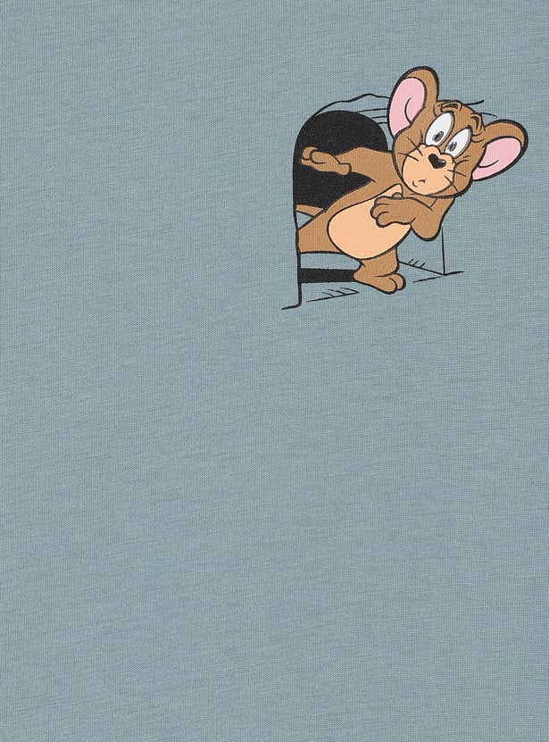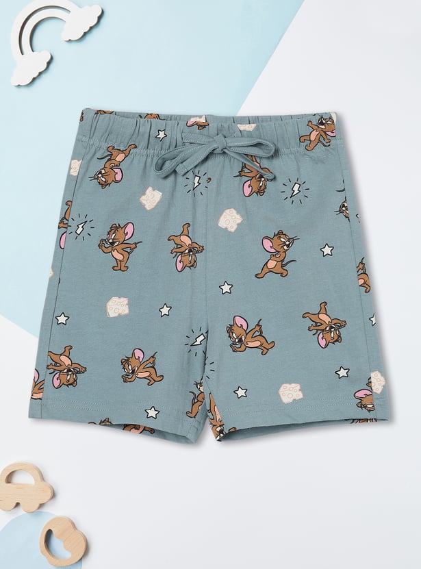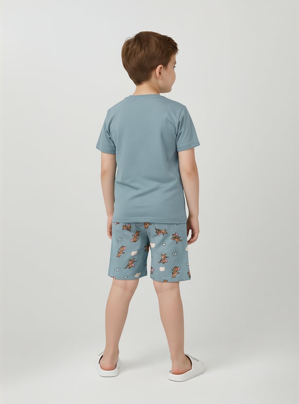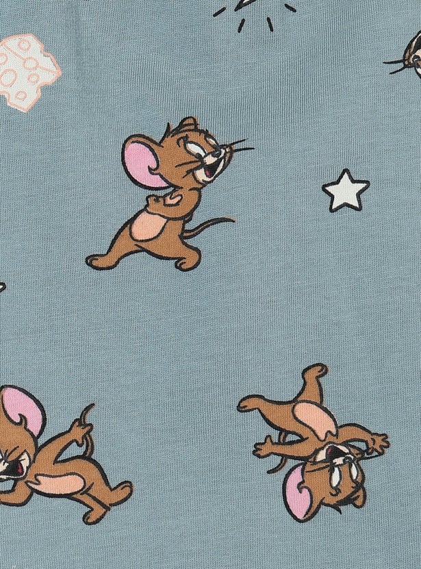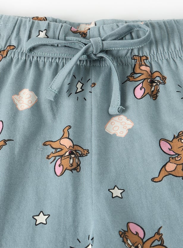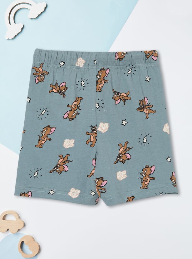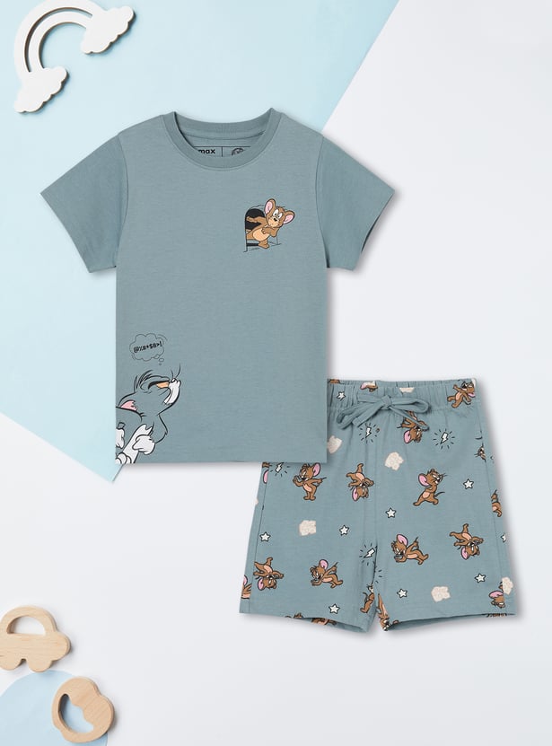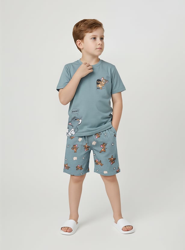 This Tom & Jerry print shorts set features a fun, printed crew neck t-shirt with half sleeves, paired with matching printed shorts that have a drawstring closure for a comfy, adjustable fit. Perfect for kids who love their favourite cartoon duo!