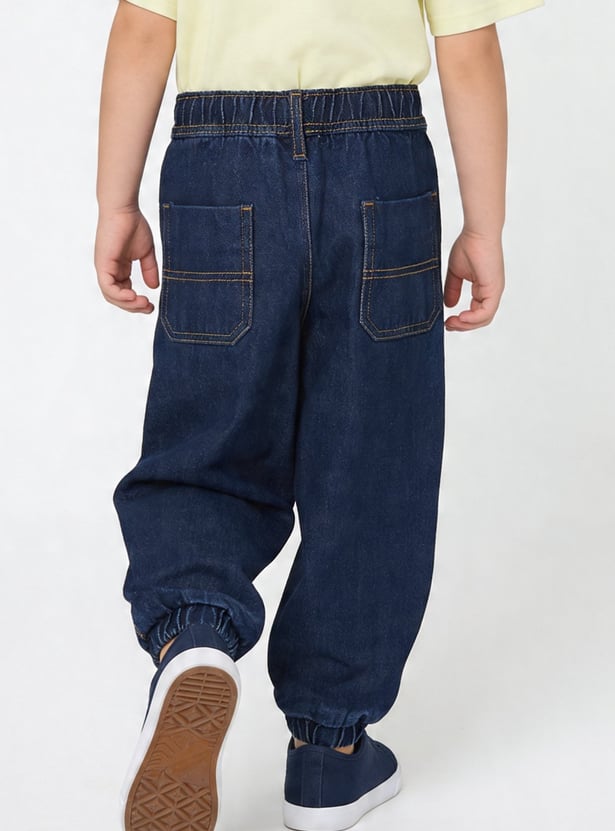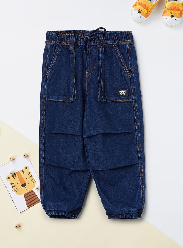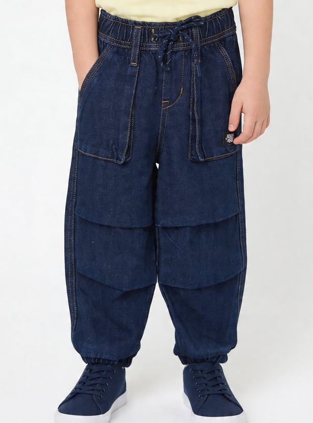 Add a trend-forward touch to his casual wardrobe with these balloon jogger jeans designed for everyday comfort. Featuring an elasticated drawstring waist, cross pockets, and back pockets for practical wear. Finished with pleated detailing on the legs, they offer a relaxed, modern silhouette.