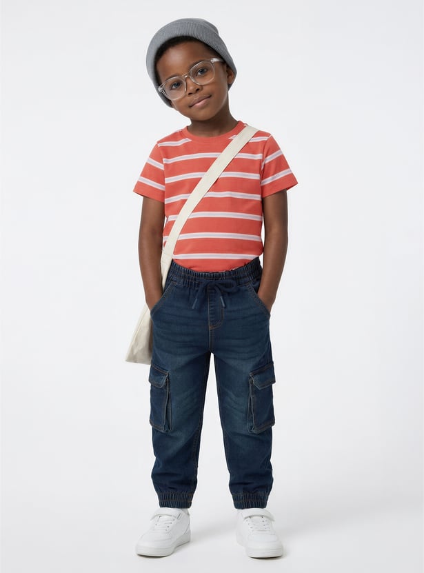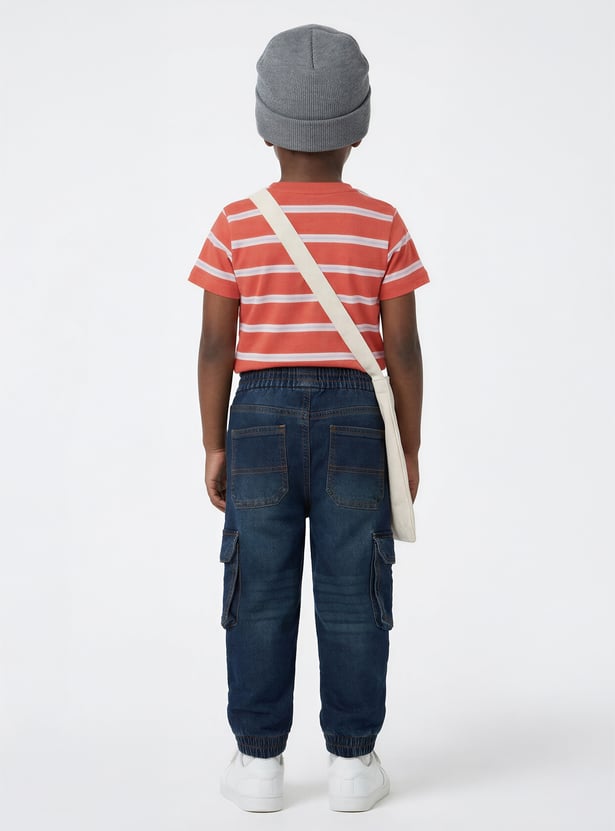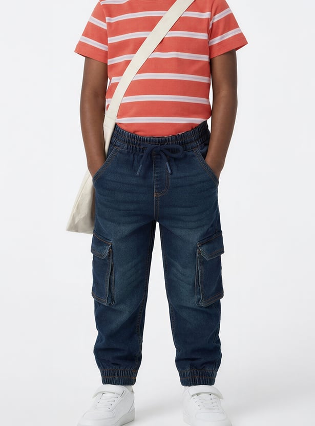 Step up your casual game with these washed mid-rise denim cargo joggers. Designed with a drawstring closure and multiple pockets, they combine utility with laid-back style for everyday comfort.